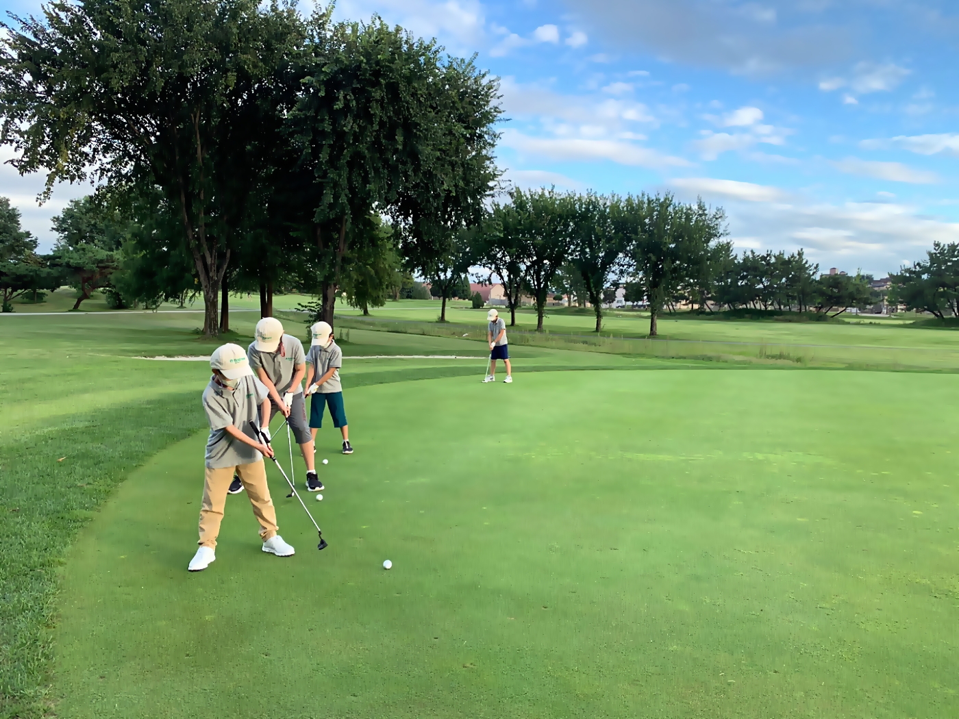 실전라운드를 앞두고 퍼팅 연습을 하고 있는 아이들