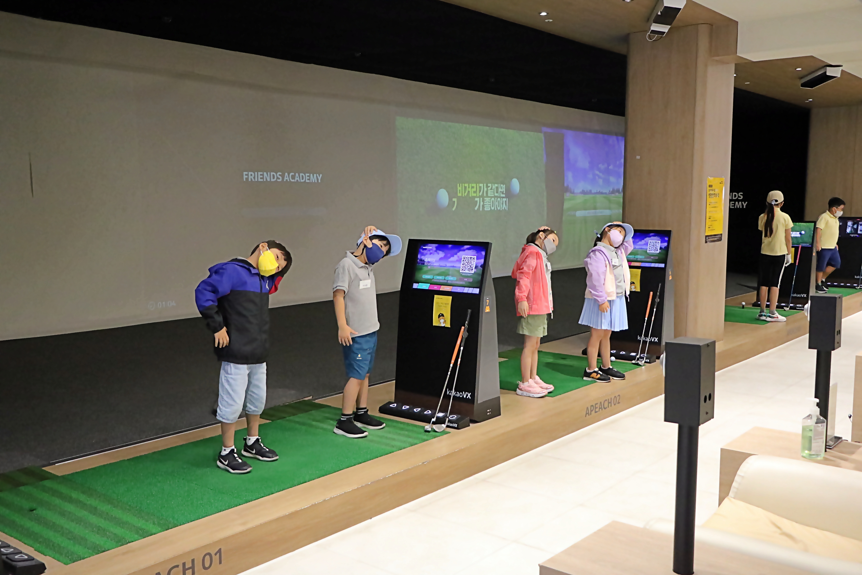 본격적인 골프실습을 앞두고 코치님을 따라 스트레칭을 하고 있는 교육생들