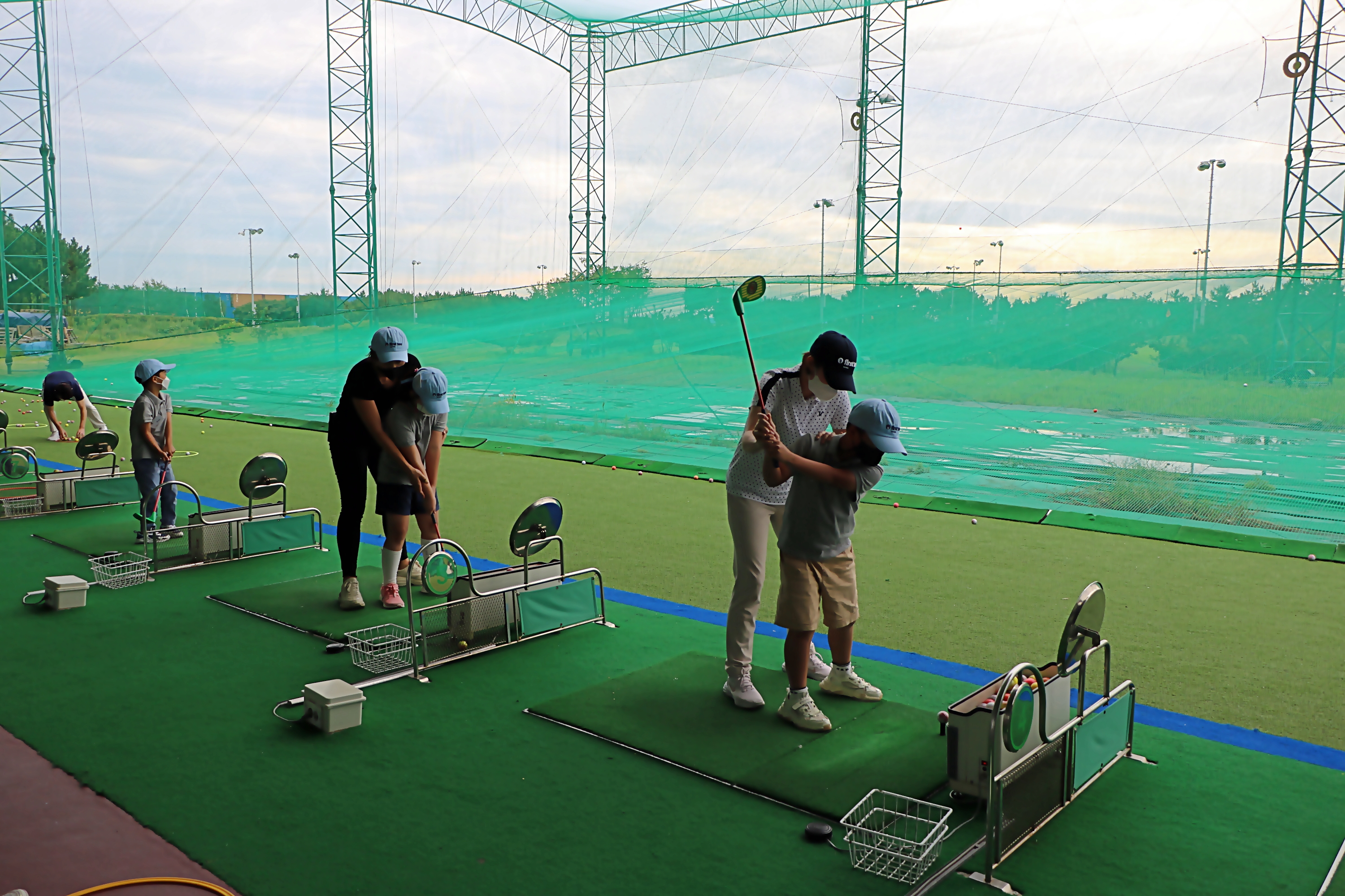 L TO L 스윙 실습을 하는 가운데 교육생별로 부족한 부분을 지도해 주고 있는 모습