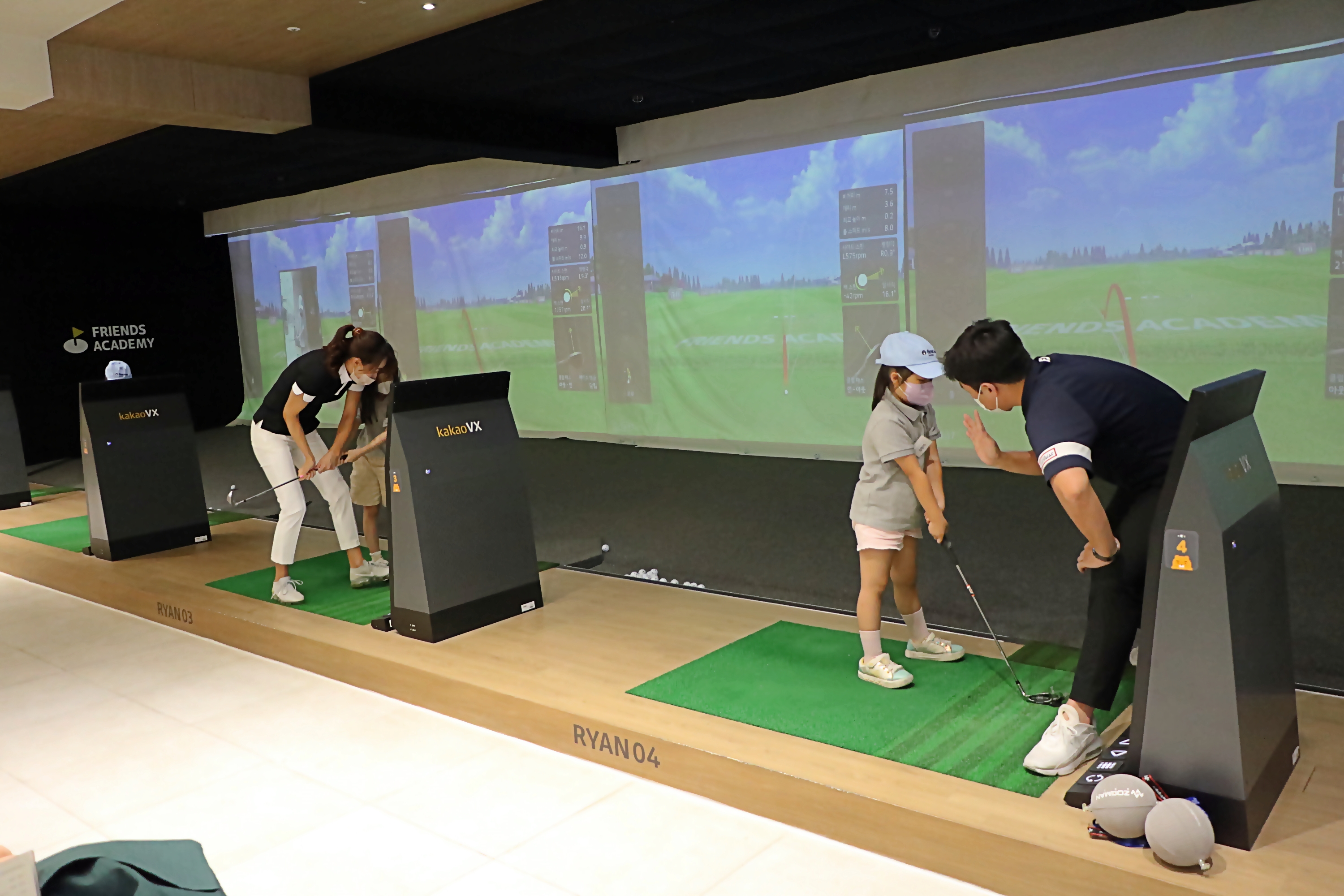 개인적으로 아이들의 눈높이에 맞게 골프레슨을 해주고 있는 모습