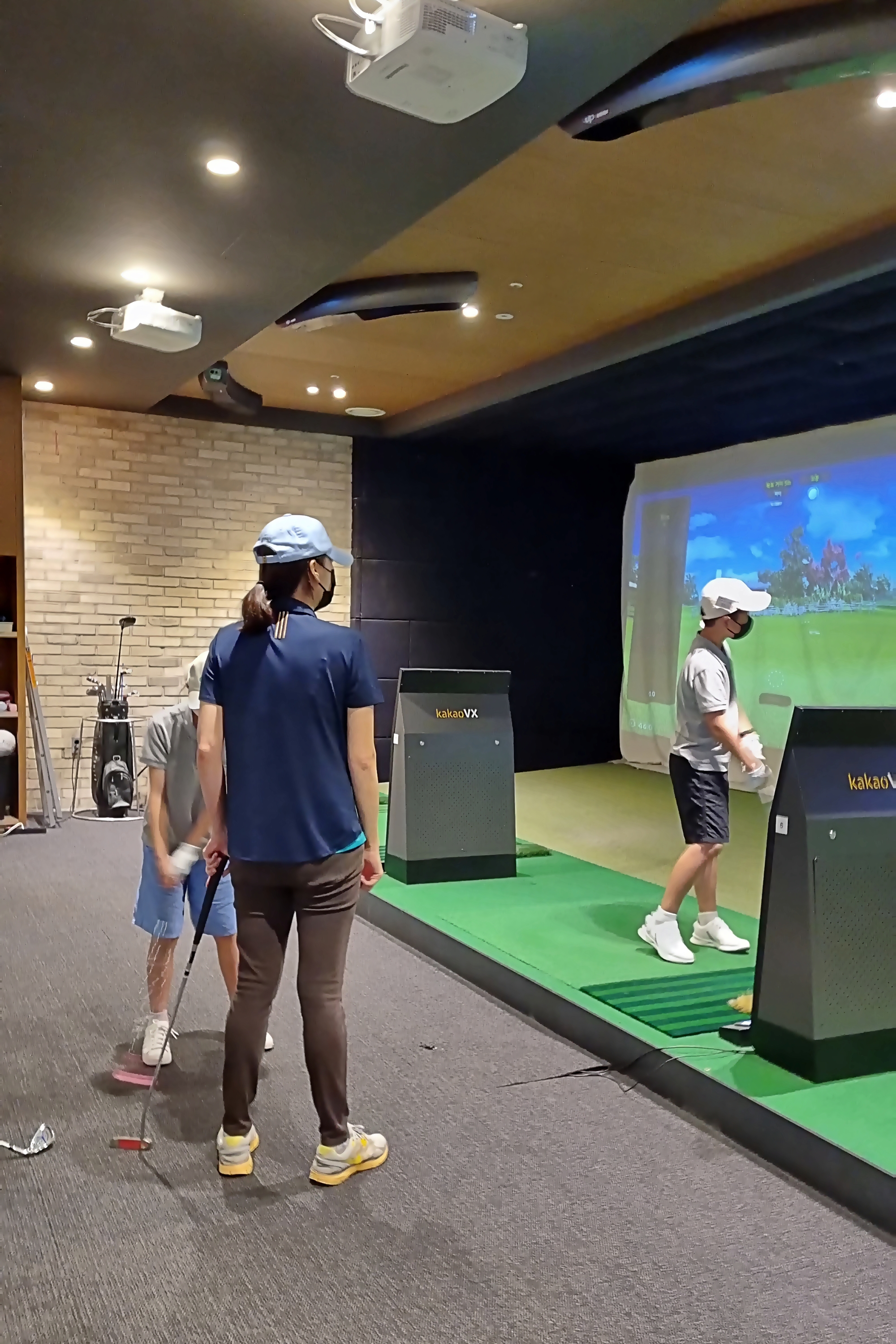 2인 1조로 퍼팅 연습 중, 대기하면서도 계속 연습스윙을 하며 감을 유지하기 위해 노력하고 있는 모습