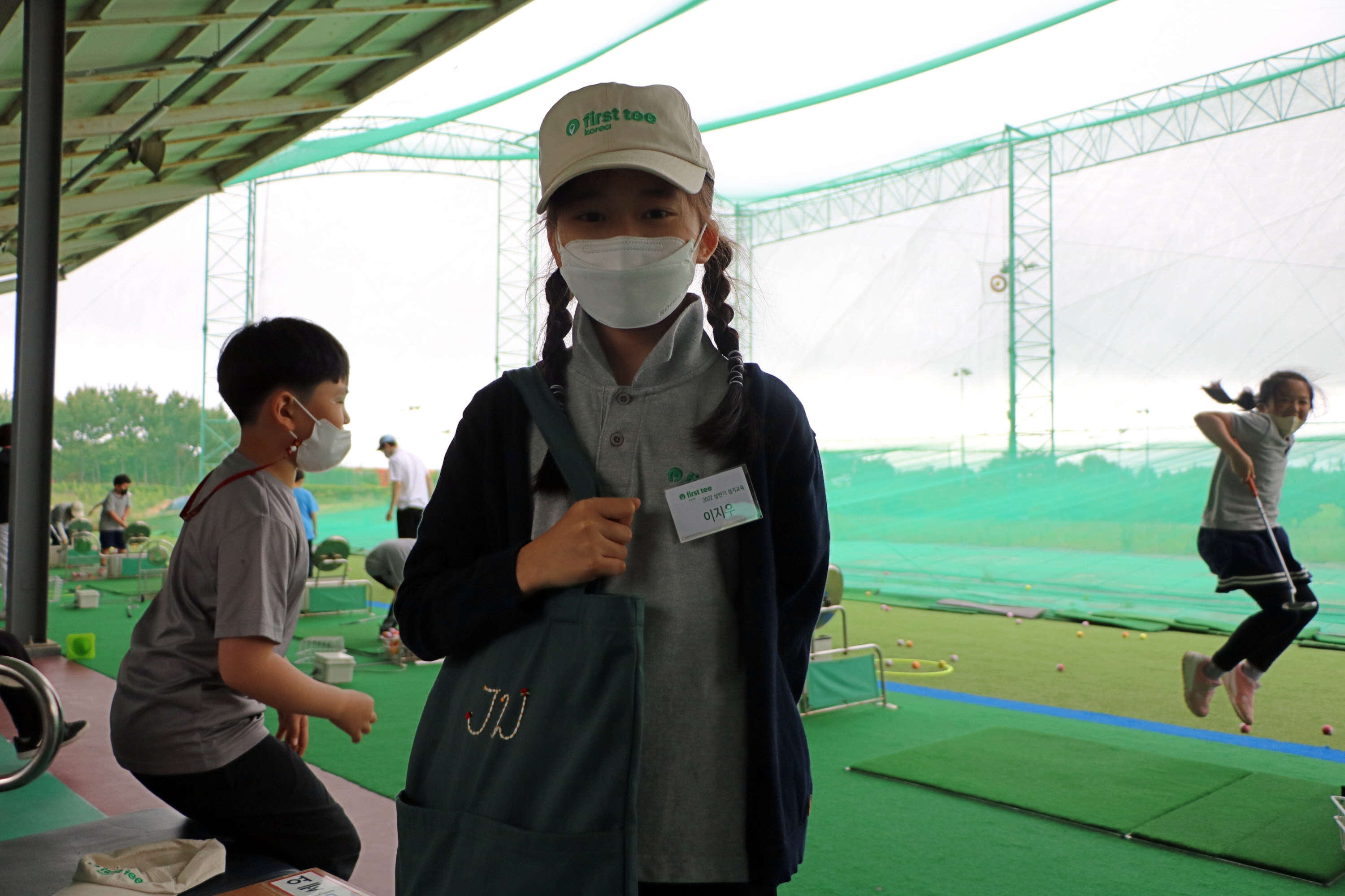 엄마가 정성 들여 수놓아준 자신의 영문 이름 이니셜이 새겨진 에코백을 자랑스럽게 메고 있는 모습
