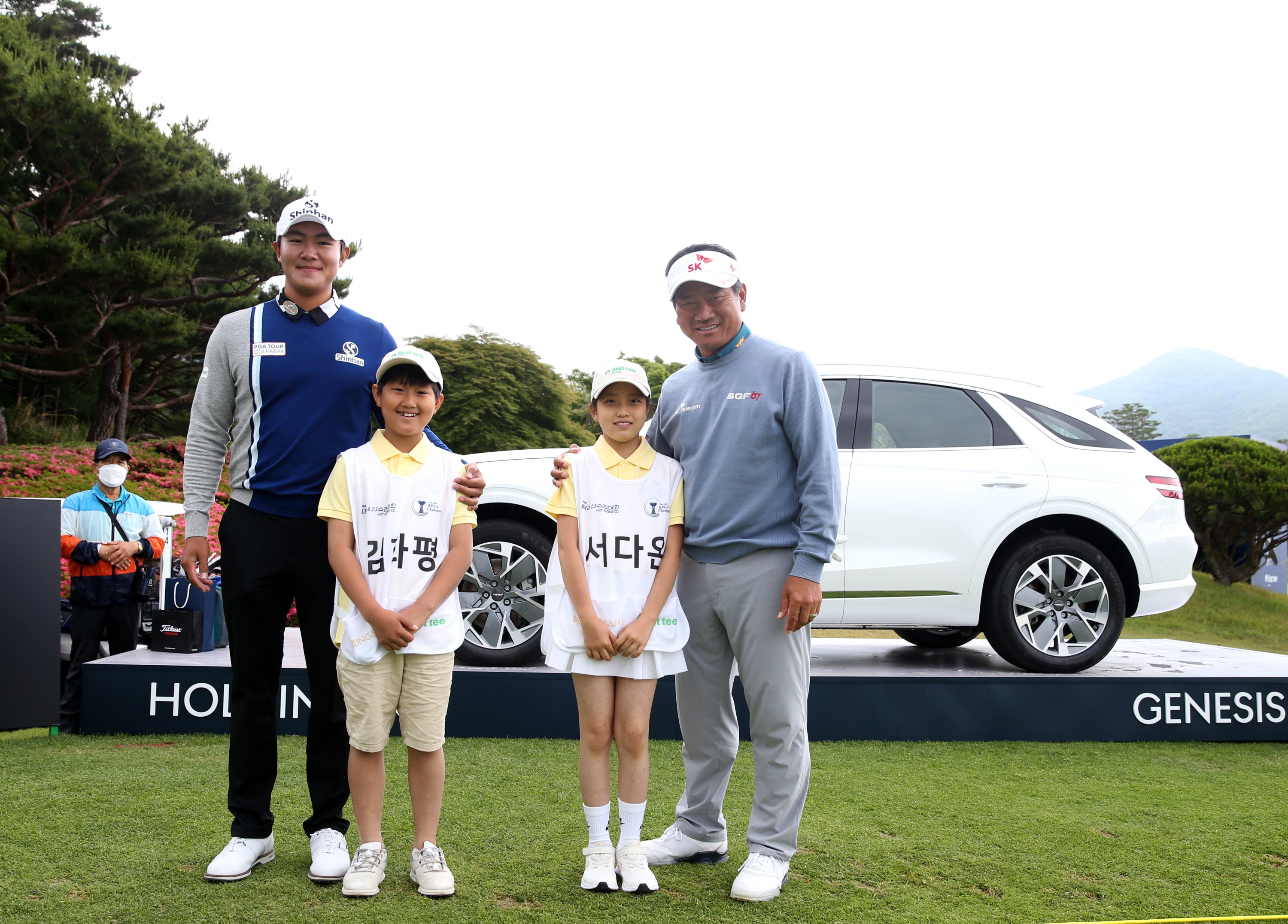 최경주, 김성현 프로와 함께 기념 사진 촬영을 하면서 즐거워 하는 모습