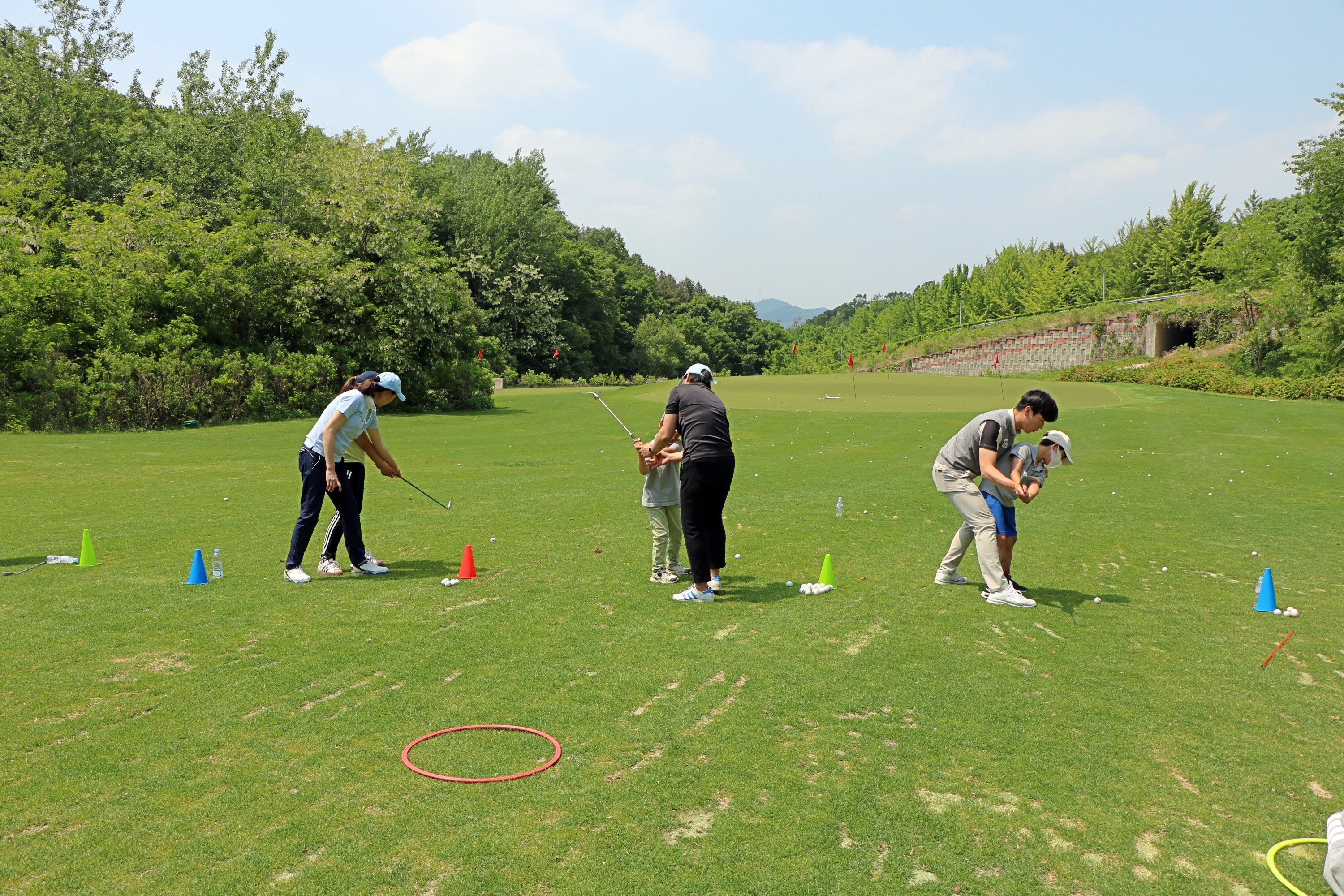 아이들의 눈높이에 맞춘 1:1 집중 레슨을 해주고 있는 코치들