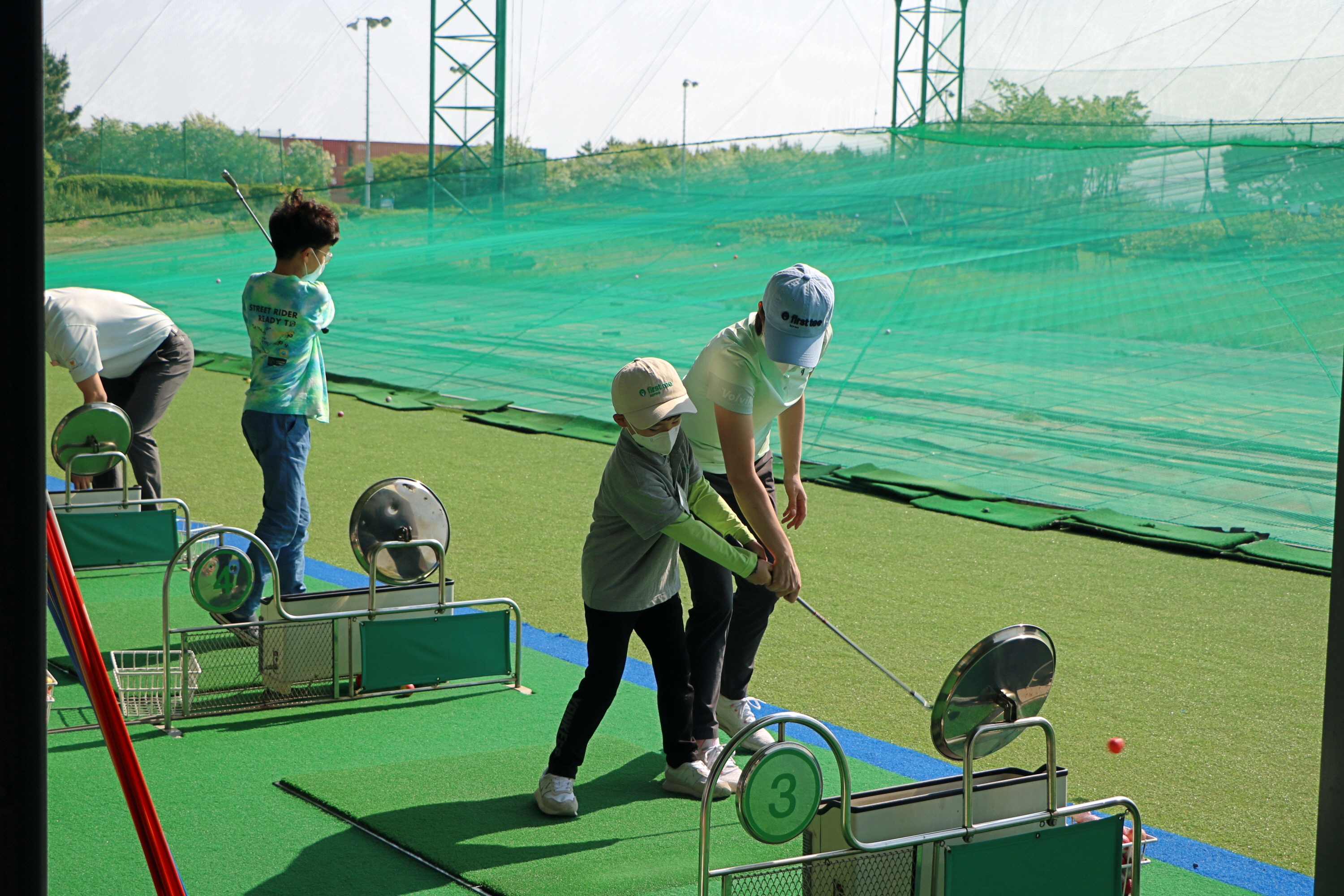 임팩트 후 팔로우스루 동작에 대해서 설명해 주고 있는 모습