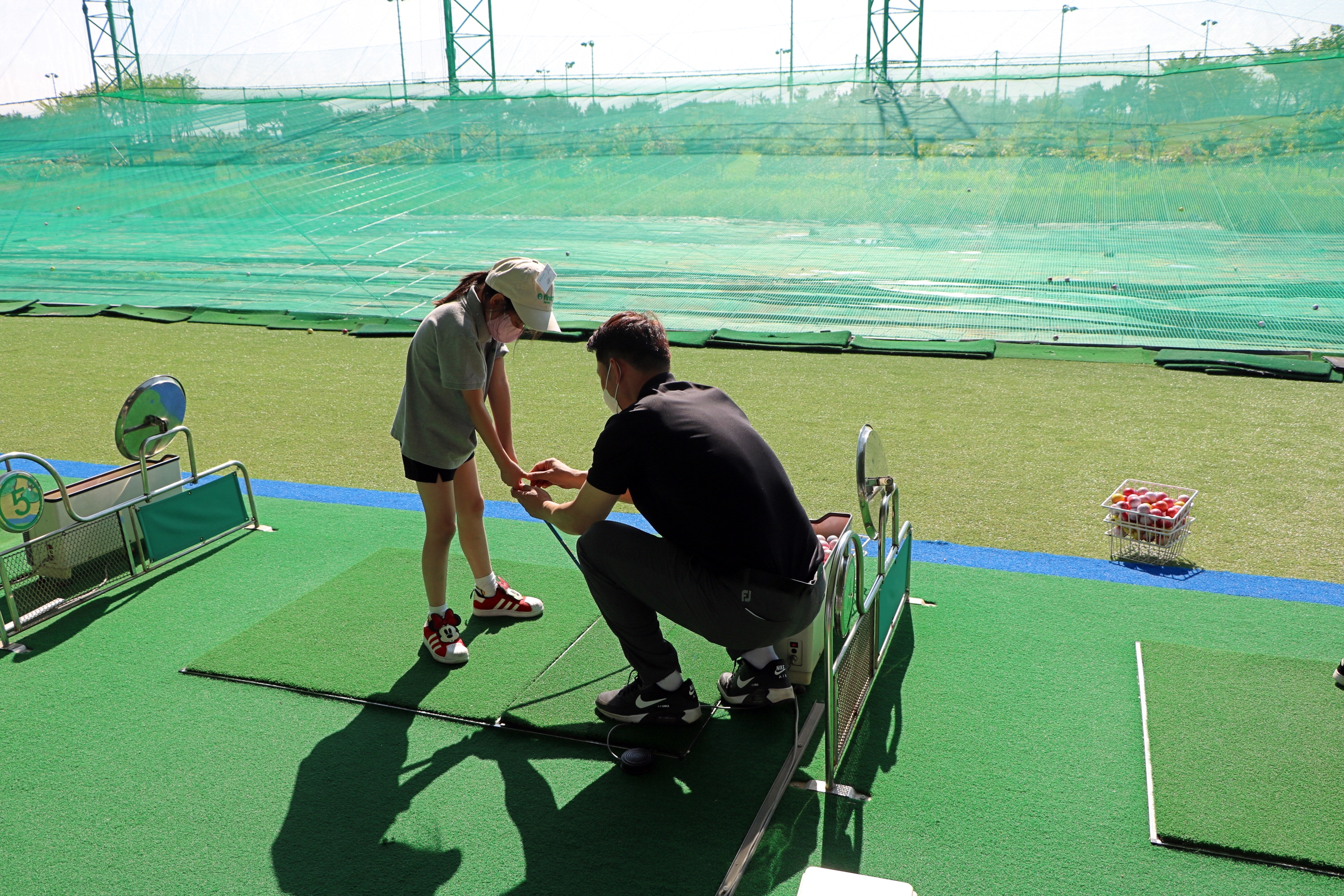 개인별로 올바른 그립 잡는 요령에 대해서 가르쳐 주고 있는 모습
