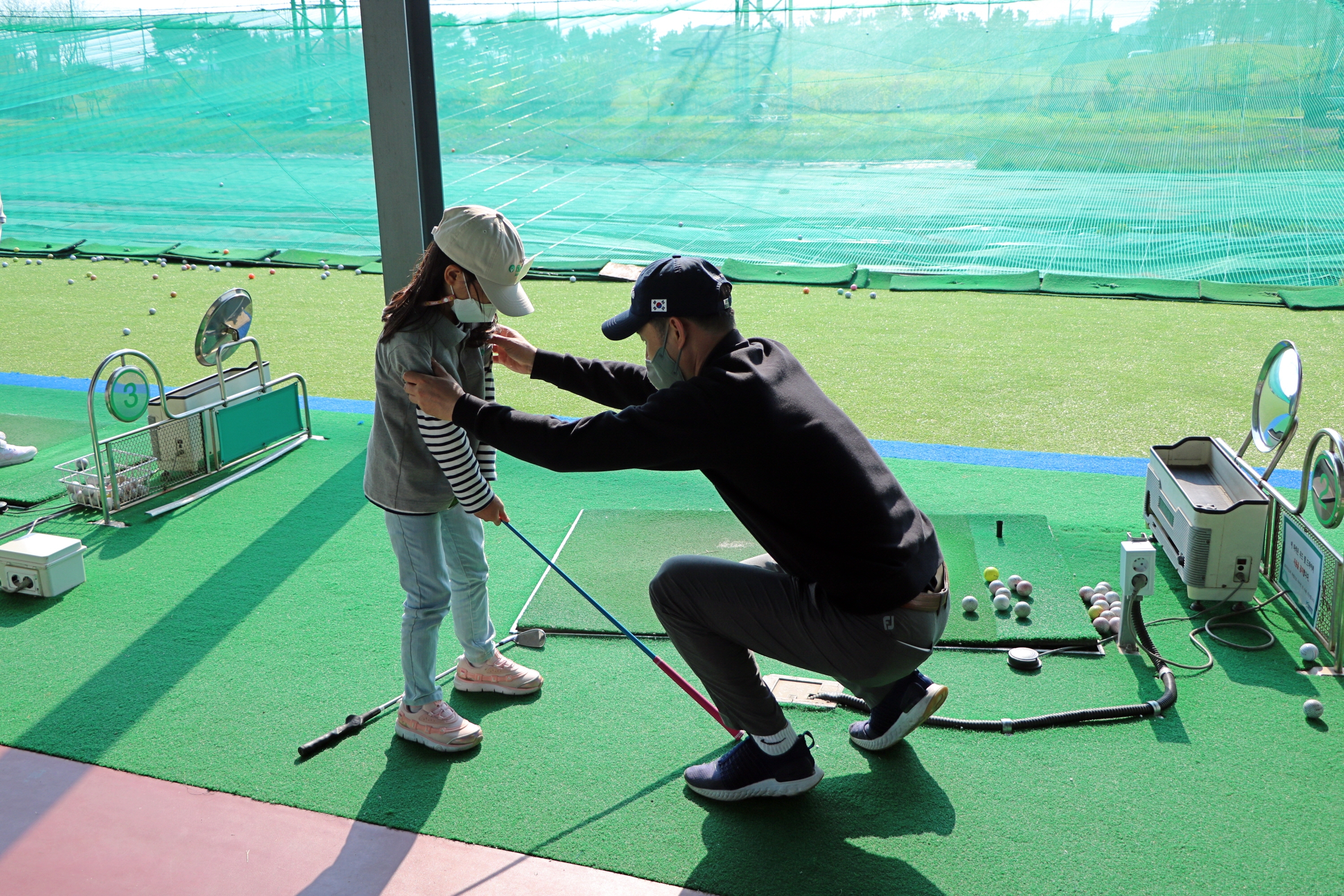 골프스윙의 가장 기본적인 동작인 어드레스 자세에 대해서 자세히 설명해 주고 있는 모습