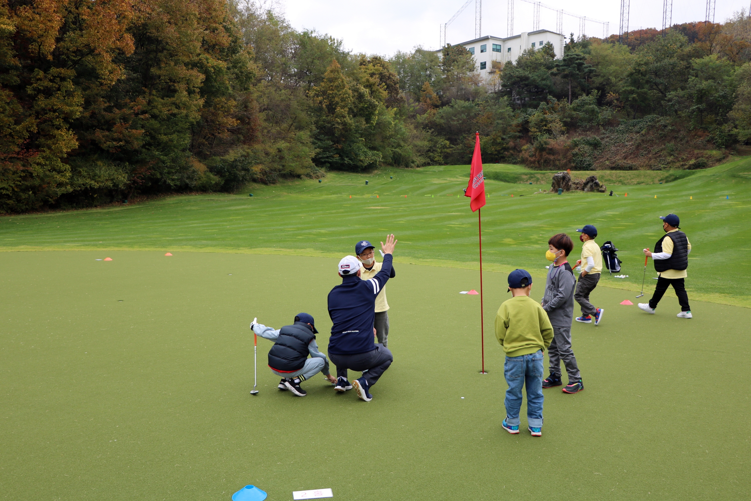 홀인에 성공한 뒤 코치님과 하이파이브를 하며 즐거워 하는 모습
