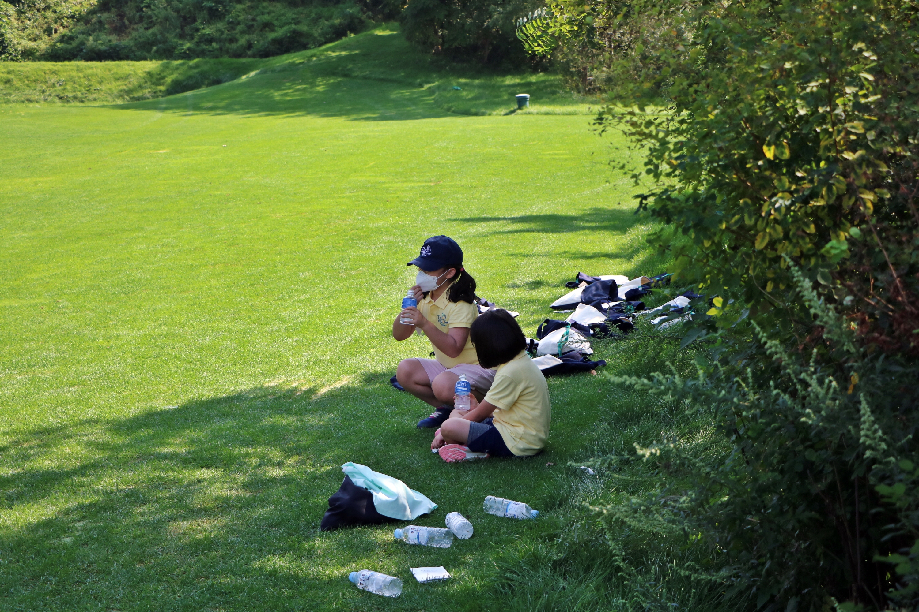 잠시 더위를 피해 스포츠 이온음료를 마시며 휴식을 취하고 있는 아이들
