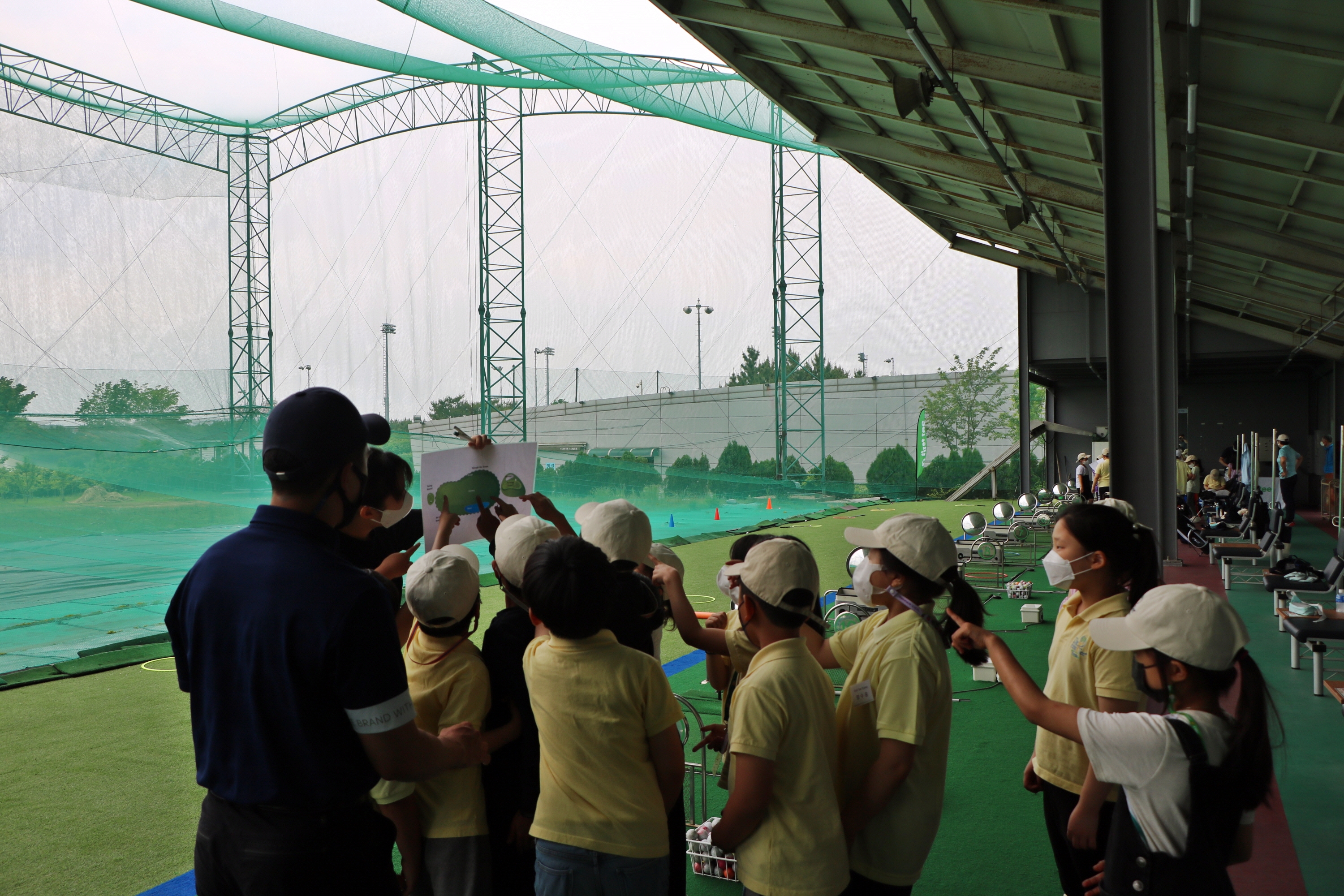 종합평가시험을 앞두고 예상문제에 해당하는 골프코스명칭에 대해서 설명해 주고 있는 모습