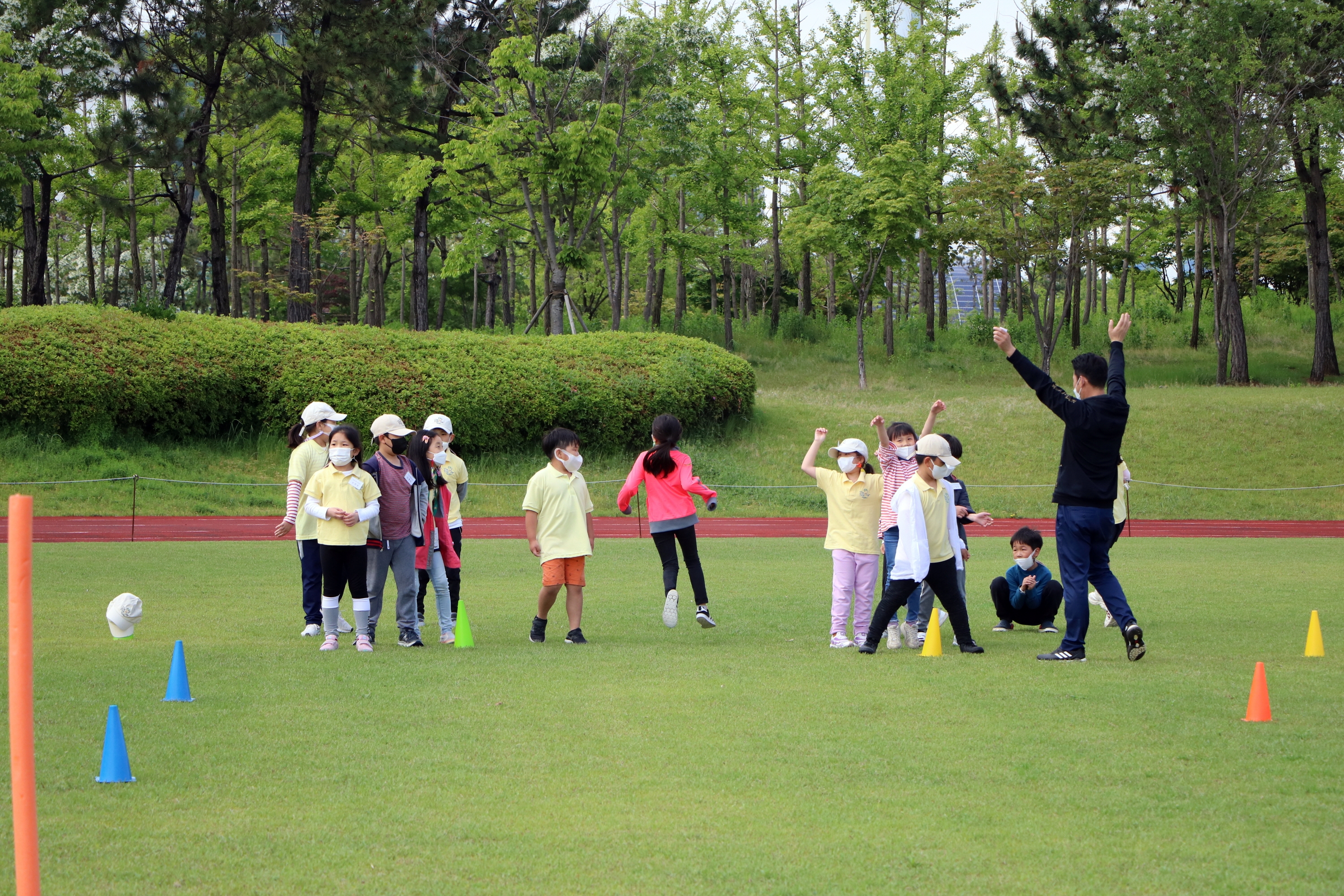 팀대항전에서 자신의 팀이 이기자 기뻐하는 아이들