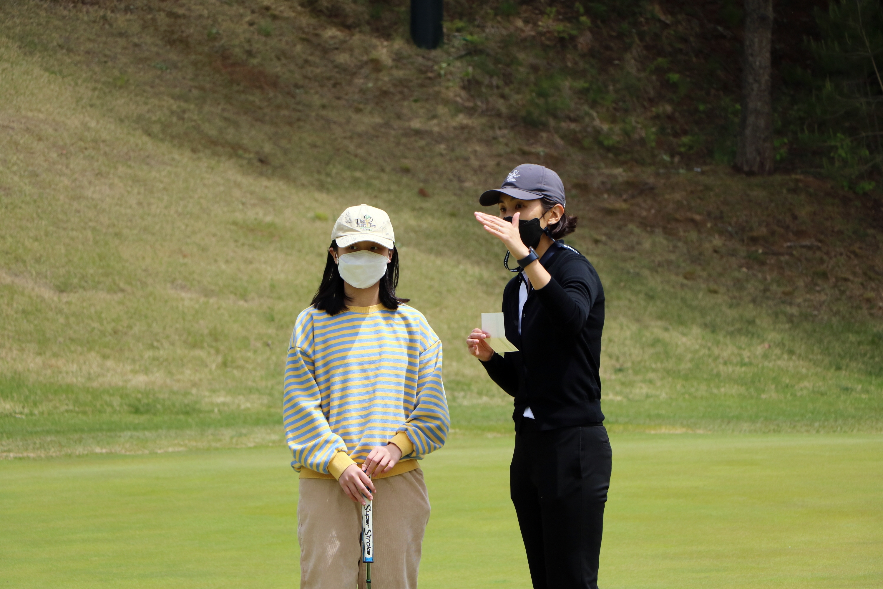 지금까지 배운 핵심가치 등의 이론적인 내용을 실제 코스에서는 어떻게 적용해야 하는지 코치님과 진지하게 대화를 나누고 있는 모습