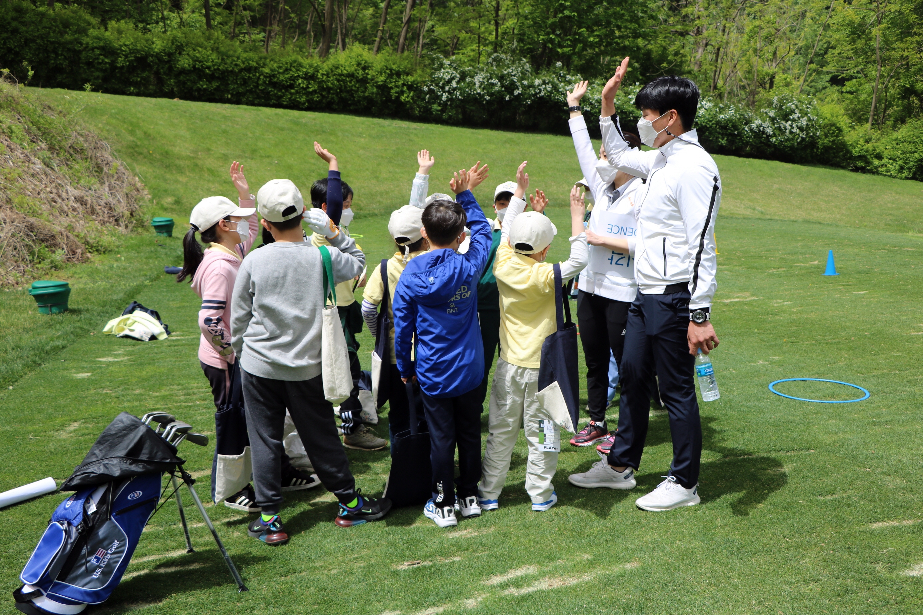 '퍼스트 티 화이팅!'으로 오늘 수업을 힘차게 마무리 하고 있는 아이들