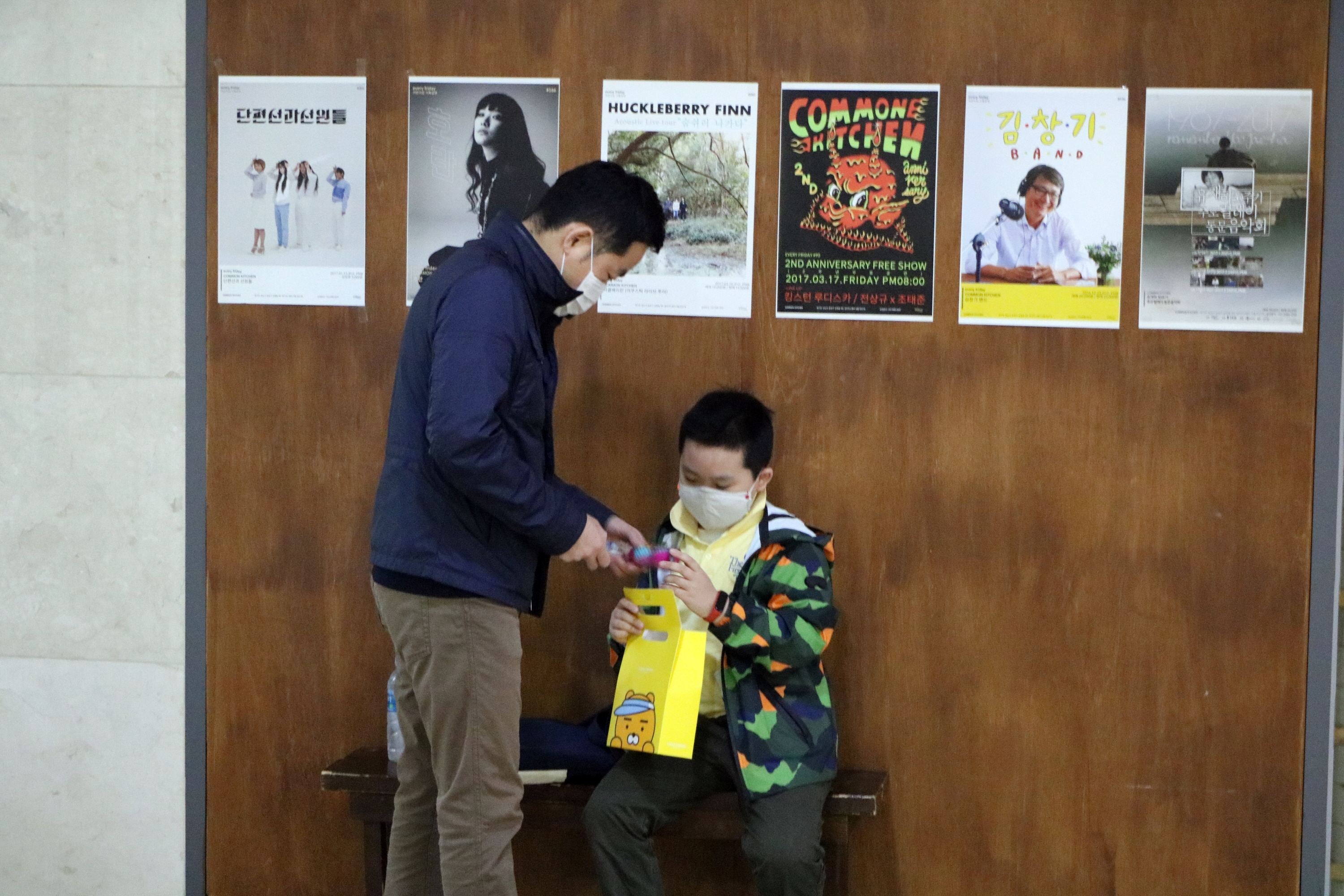 교육 후 어린이 날을 맞아 받은 선물을 아빠와 함께 확인하며 즐거워 하는 교육생