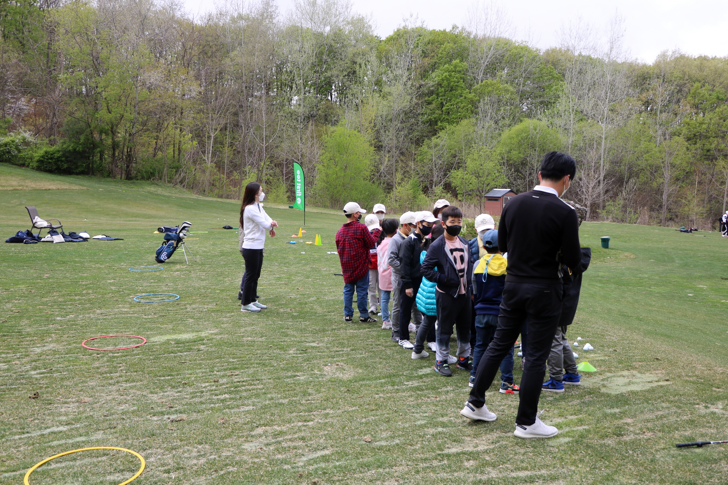 피치샷 및 풀스윙 연습을 마친 뒤 다음 코스로 이동하기 위해 질서정연하게 줄을 맞추고 서 있는 모습