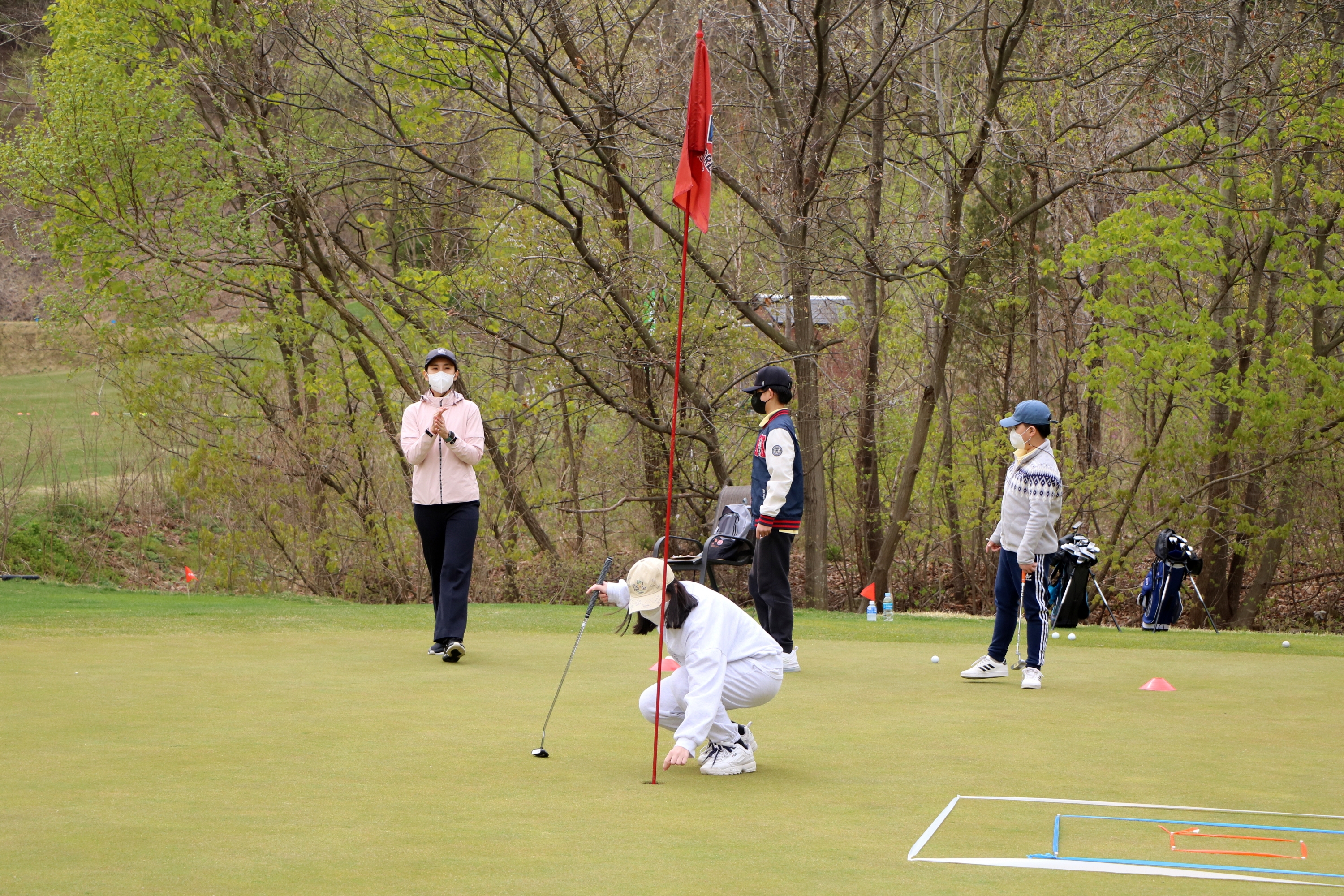 원구선타의 룰을 지키며 홀아웃 하는 교육생과 격려하고 있는 코치
