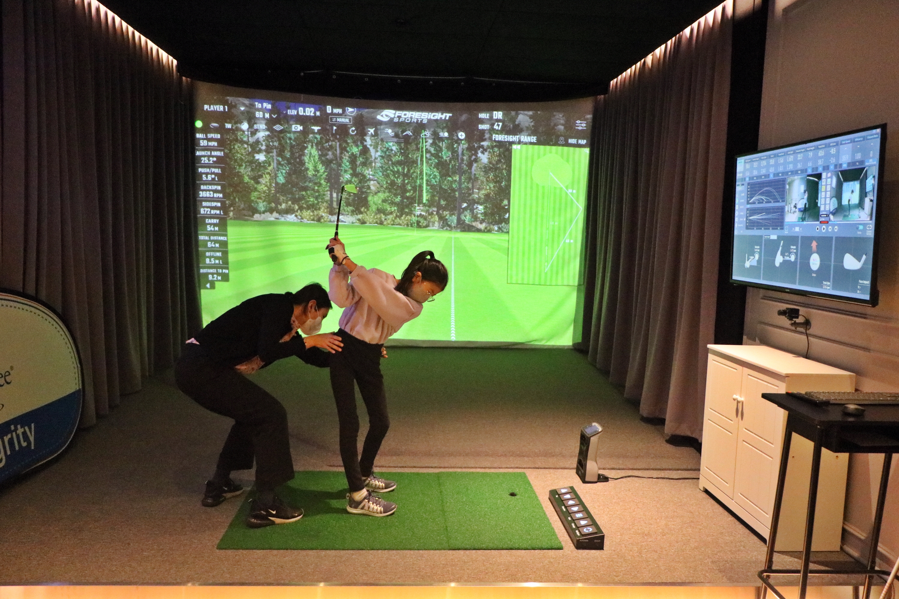4R을 사용하면서 연습하는 가운데 안되는 부분을 원포인트 레슨으로 교정해주고 있는 모습