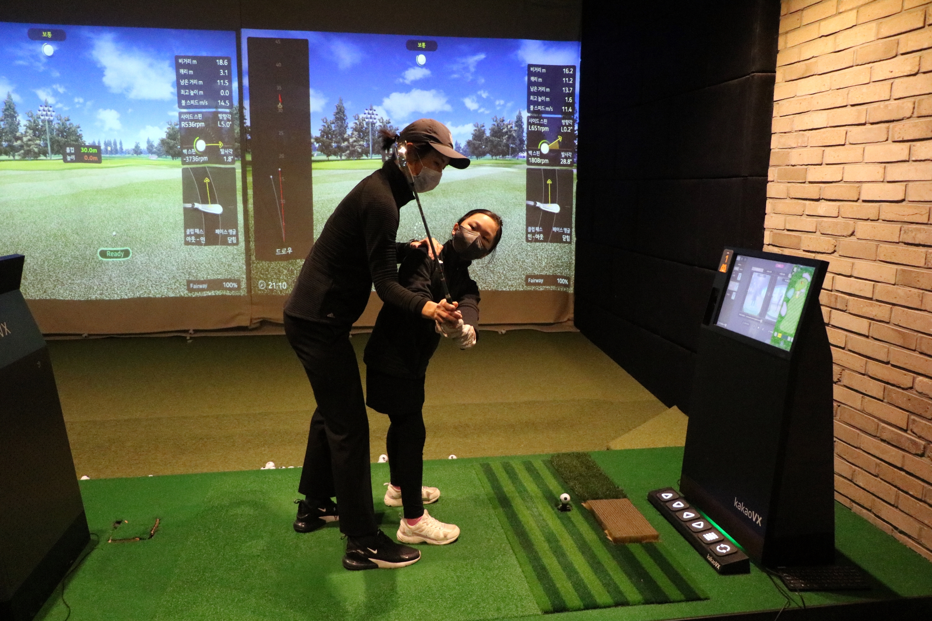 백스윙시 올바른 손목 코킹 동작에 대해서 설명해 주고 있는 모습