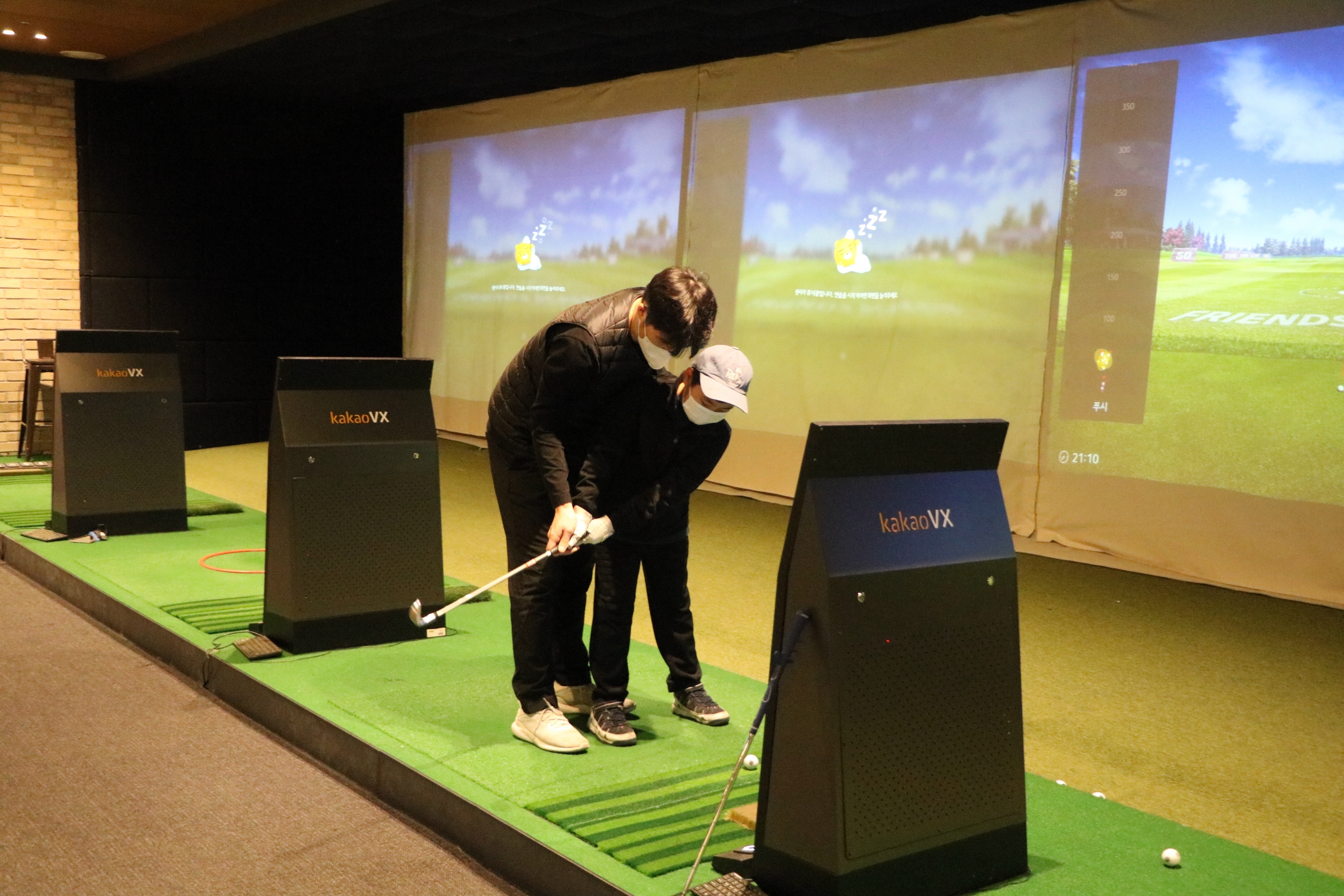테이크백 시 올바른 스윙궤도에 대해서 설명해 주고 있는 모습