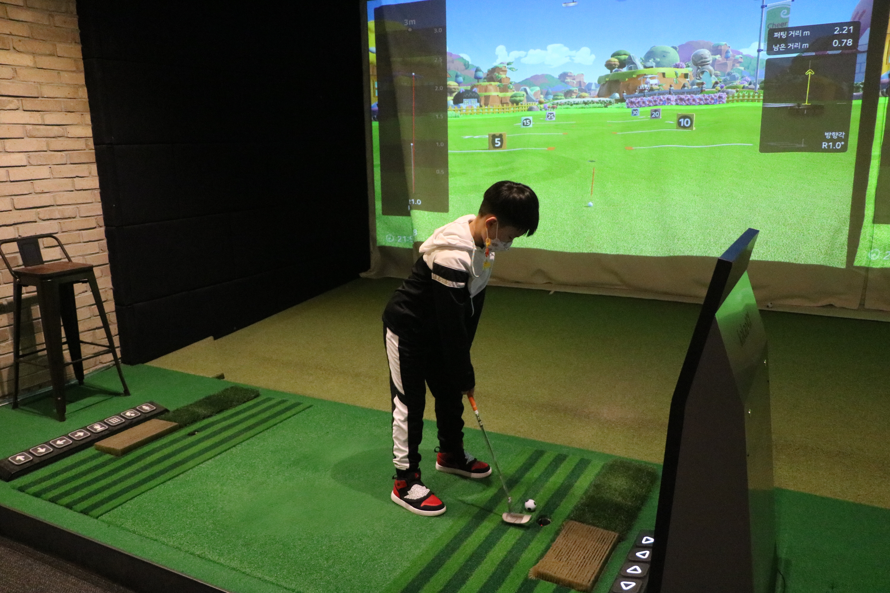 퍼팅 실습시간에 마치 대회에 출전한 프로골퍼처럼 신중하게 퍼팅에 몰입한 교육생 모습