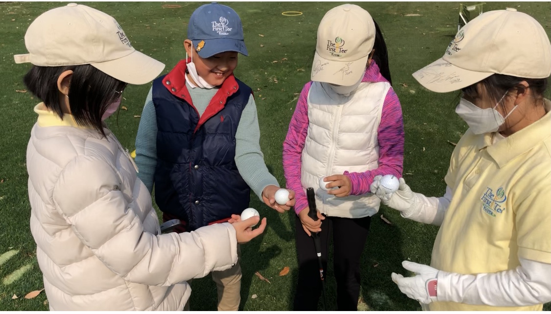 미니 홀 라운드 전 볼 확인하는 파 레벨 학생들
