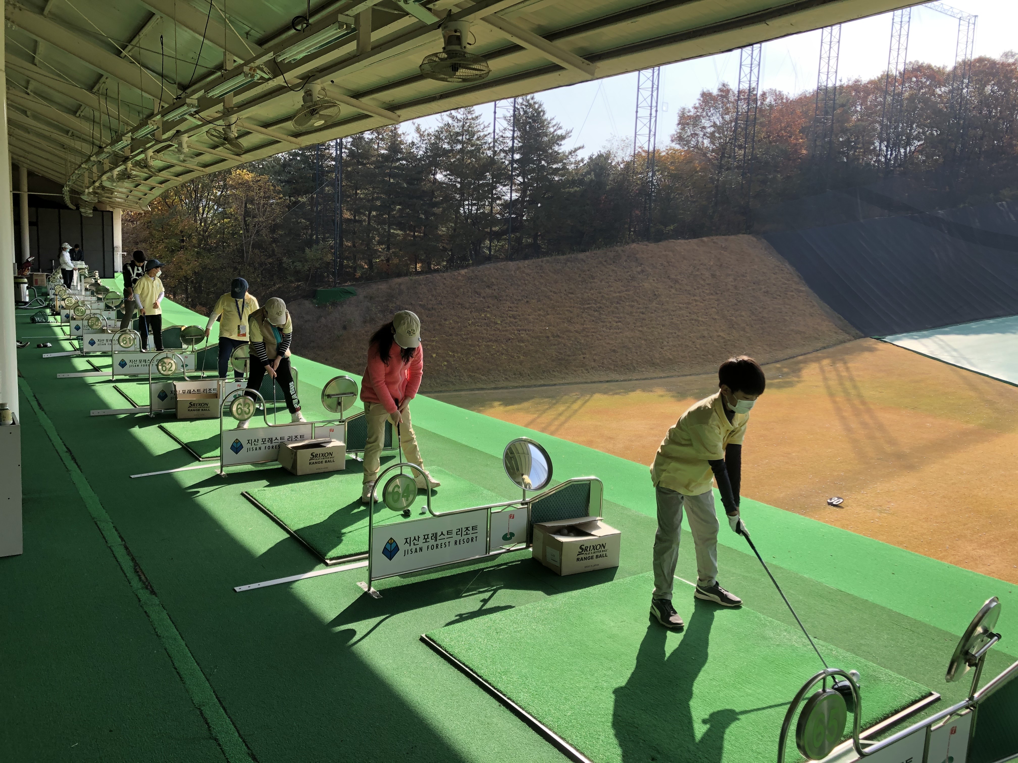 파 레벨 학생들 드라이빙 레인지에서 연습