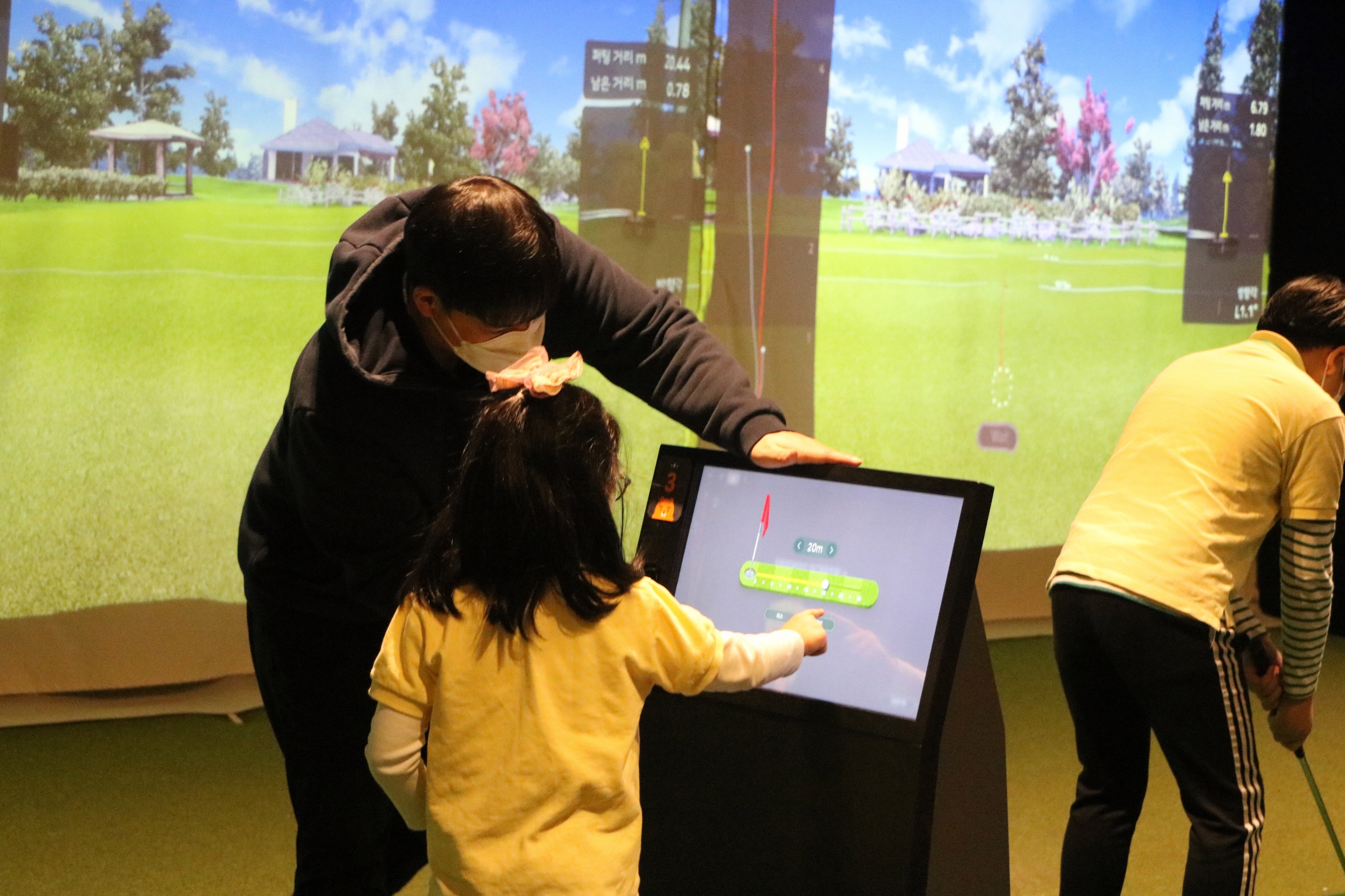 퍼팅연습모드에서 거리를 세팅하는 법에 대해서 베운 뒤 직접 원하는 거리를 세팅하는 모습