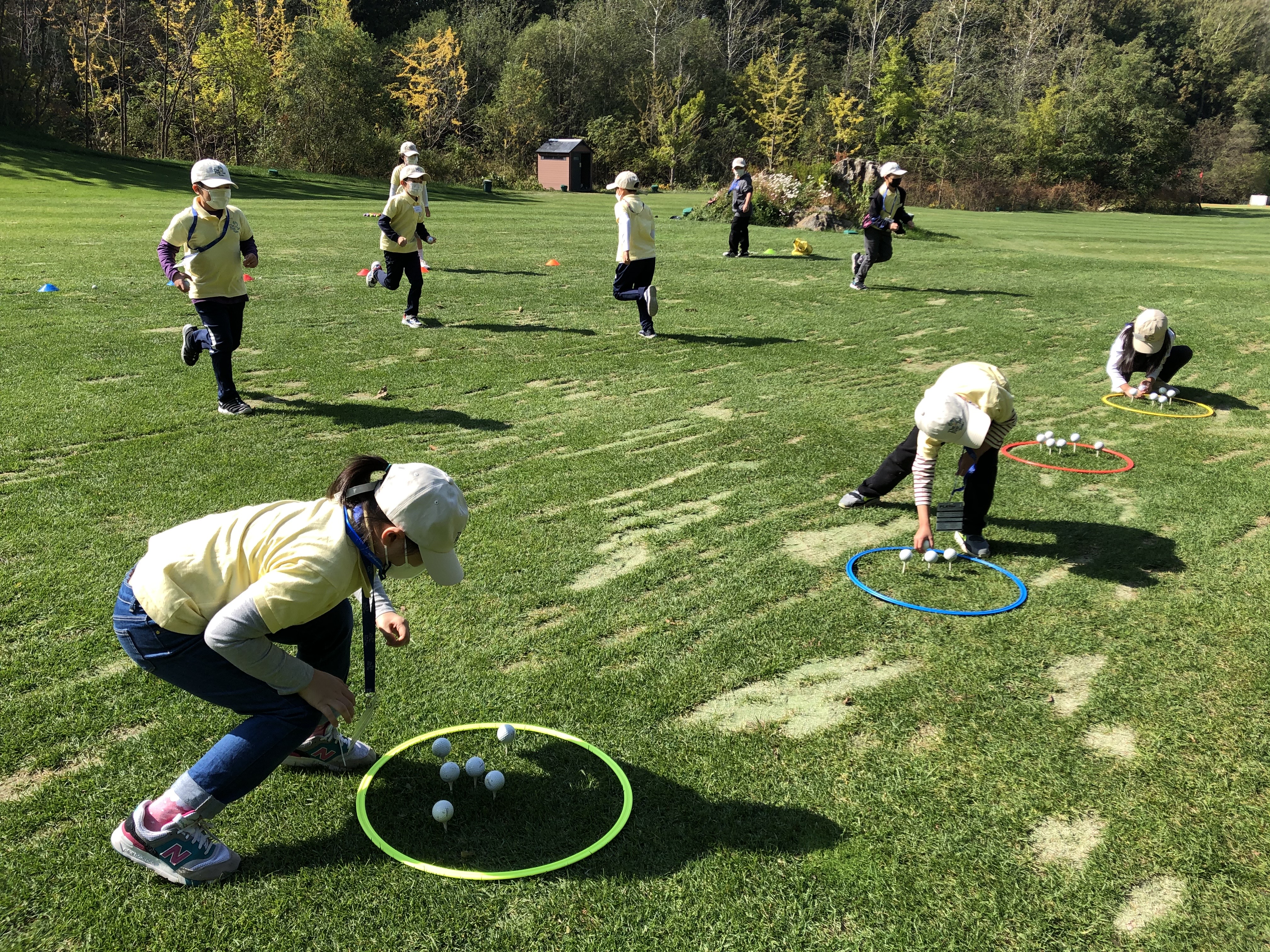 빠르게 티에 공을 올려놓는 연습으로 집중력과 중심잡기 연습이 동시에 가능합니다.