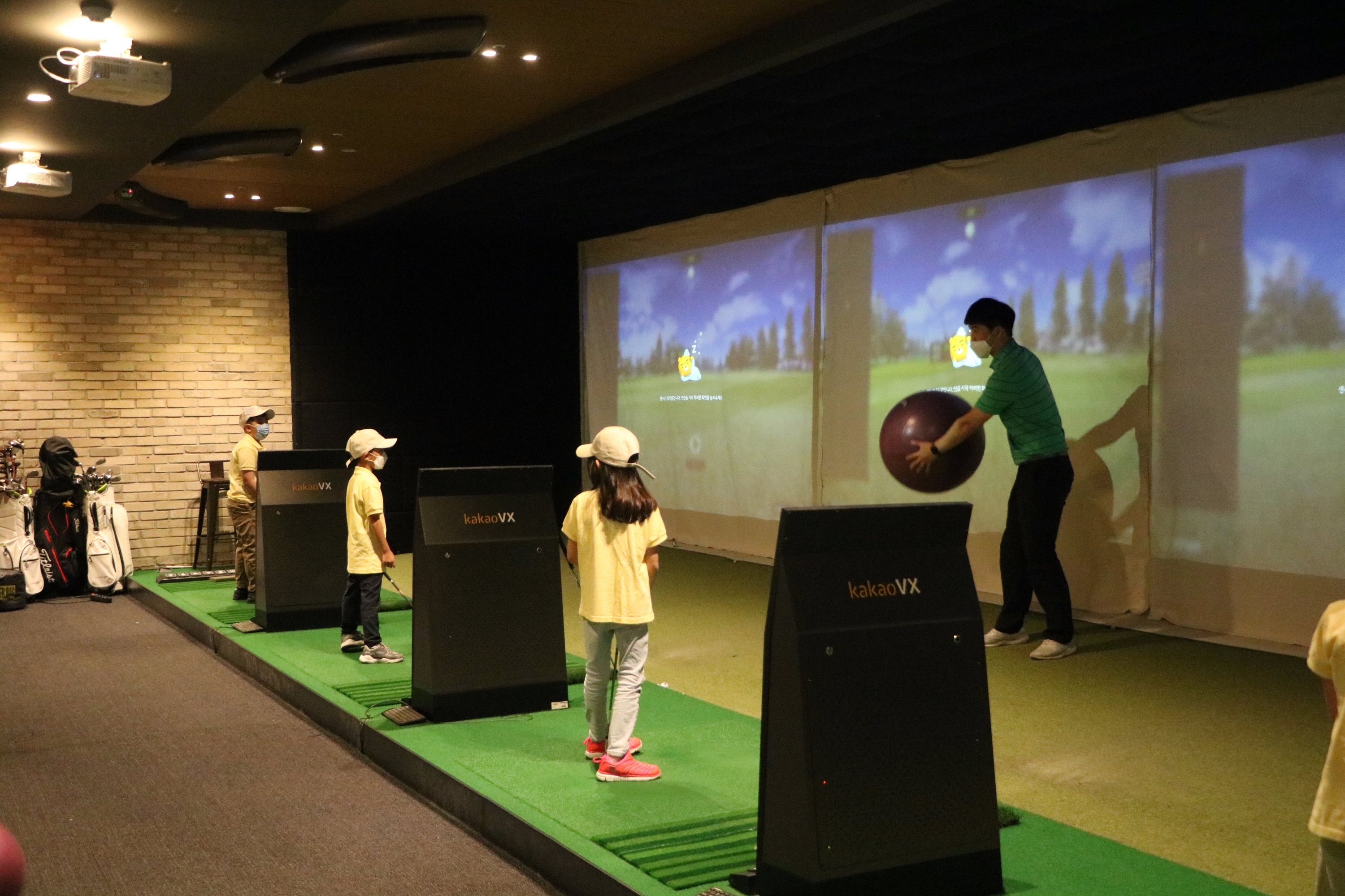 어드레스 자세 및 골프스윙의 기본 원리에 대해서 배우고 있는 아이들