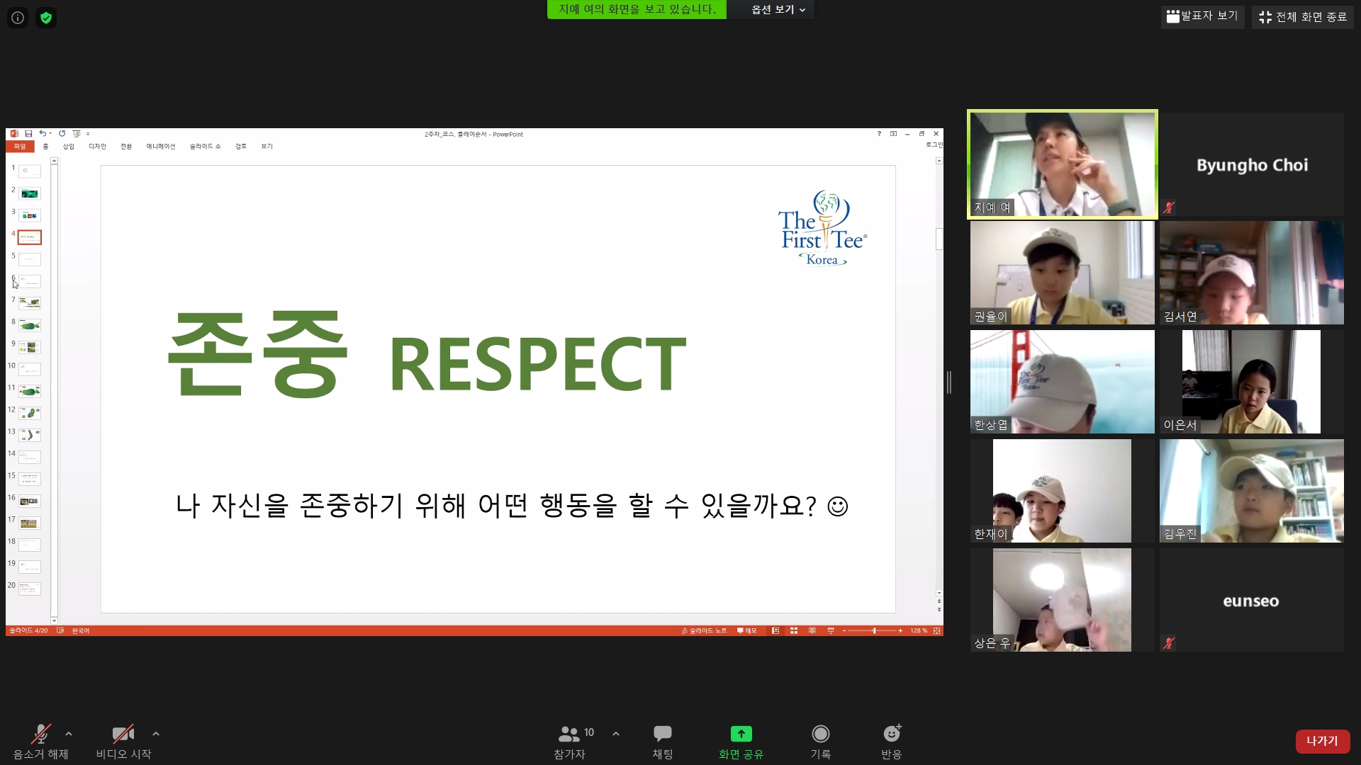 지난주에 배운 존중하기에 대해 복습하고 있는 모습