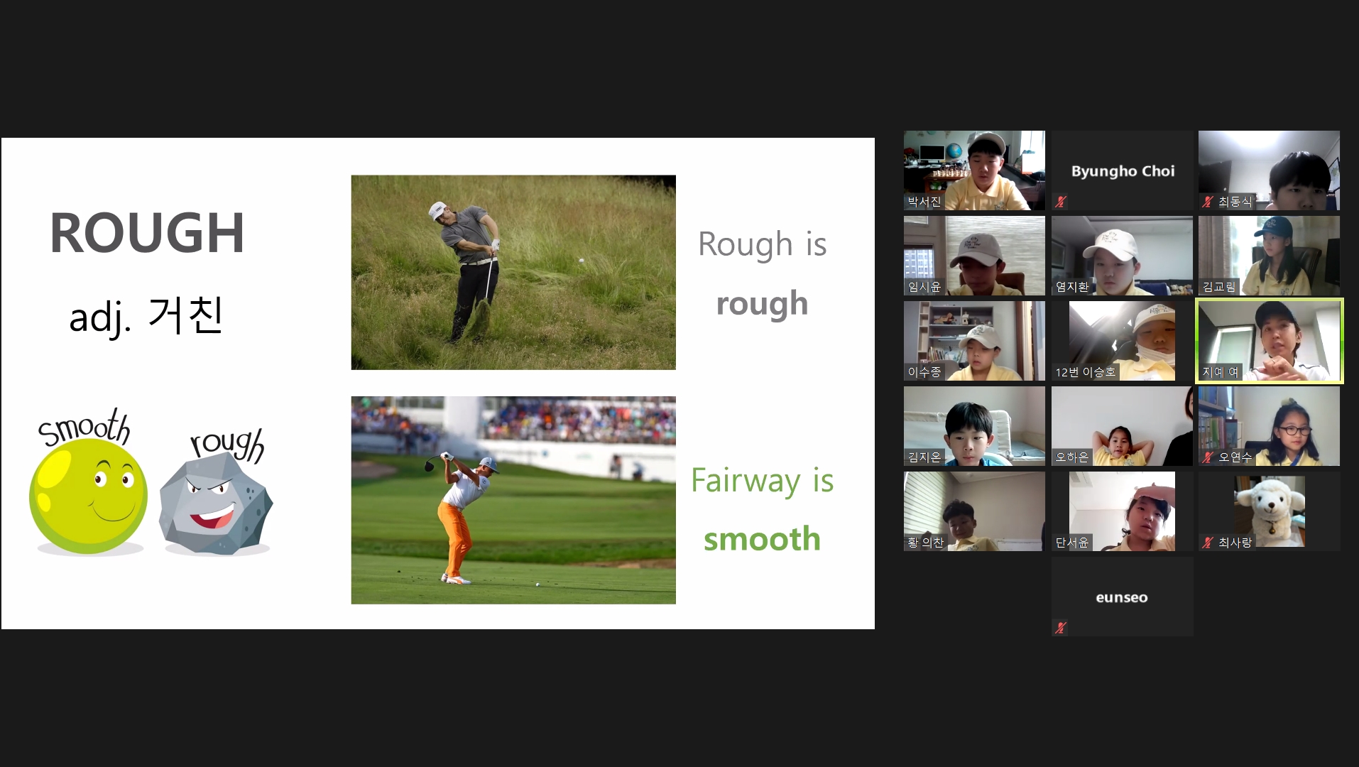골프코스에서 러프와 페어웨이에 대해 설명해 주고 있는 모습