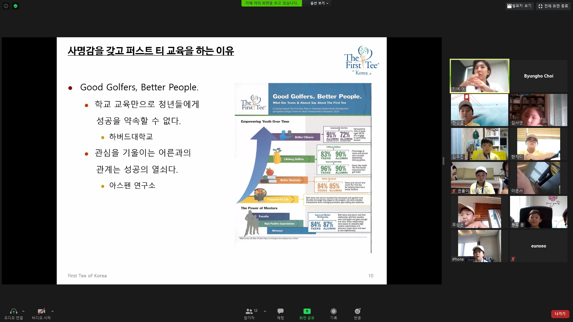 우리가 사명감을 갖고 교육을 하고 있는 이유에 대해 설명해 주고 있는 모습