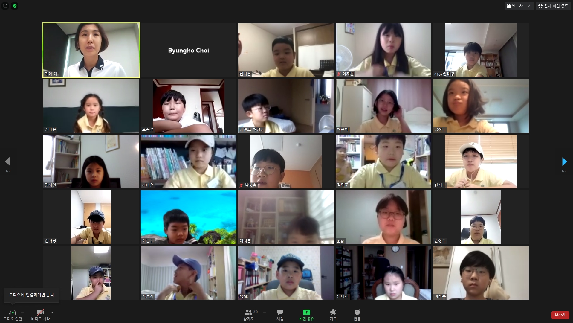 한명, 한명 호명을 하면서 반갑게 아이들을 맞아 주고 있는 모습