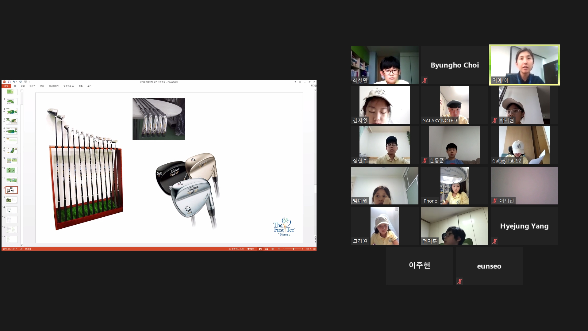종합평가 문제풀이 과정 도중 골프클럽에 대한 문제에 대해 부연설명을 해 주고 있는 모습