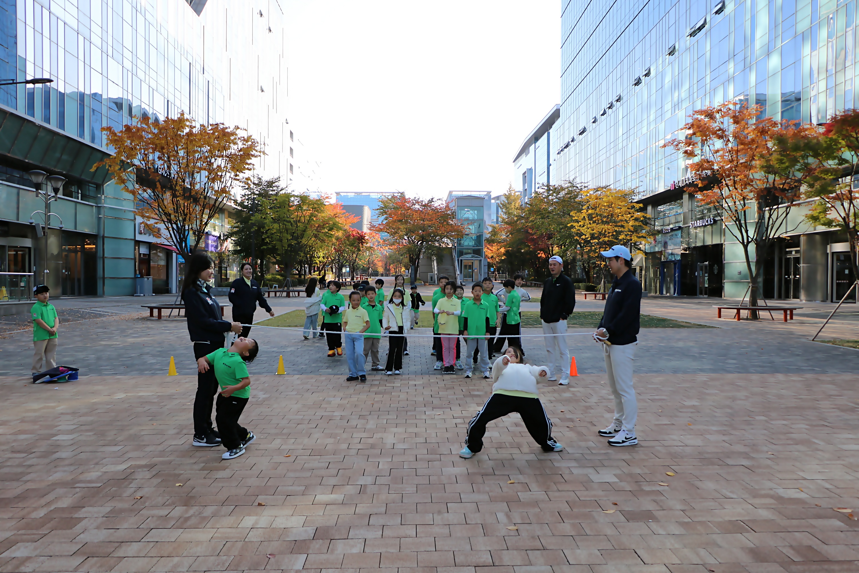 유연성 평가할 수 있는 림보게임을 즐기고 있는 모습