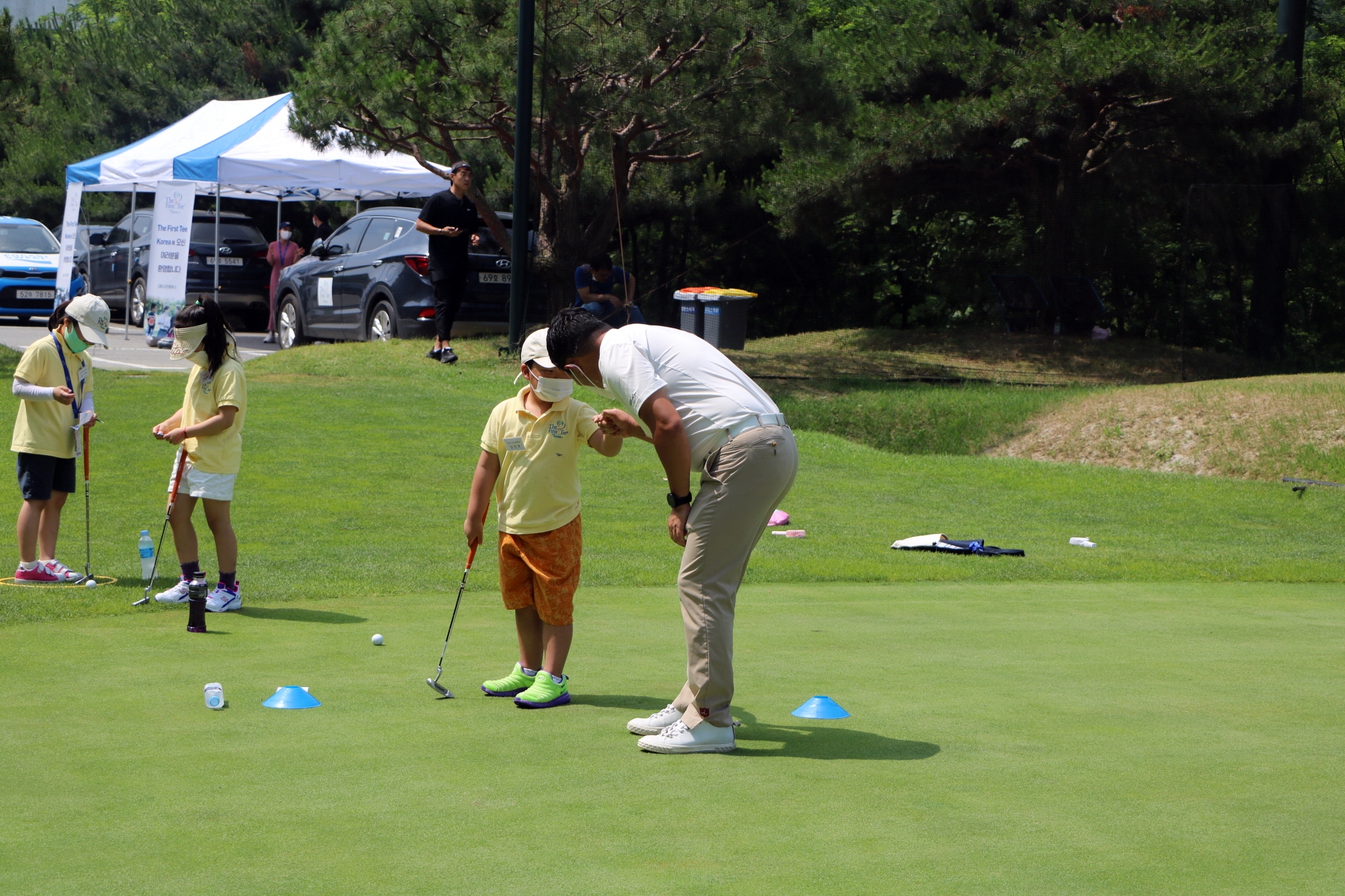 코로나 19 감염 예방을 위해 남영우 프로님과 주먹악수를 하고 있는 모습
