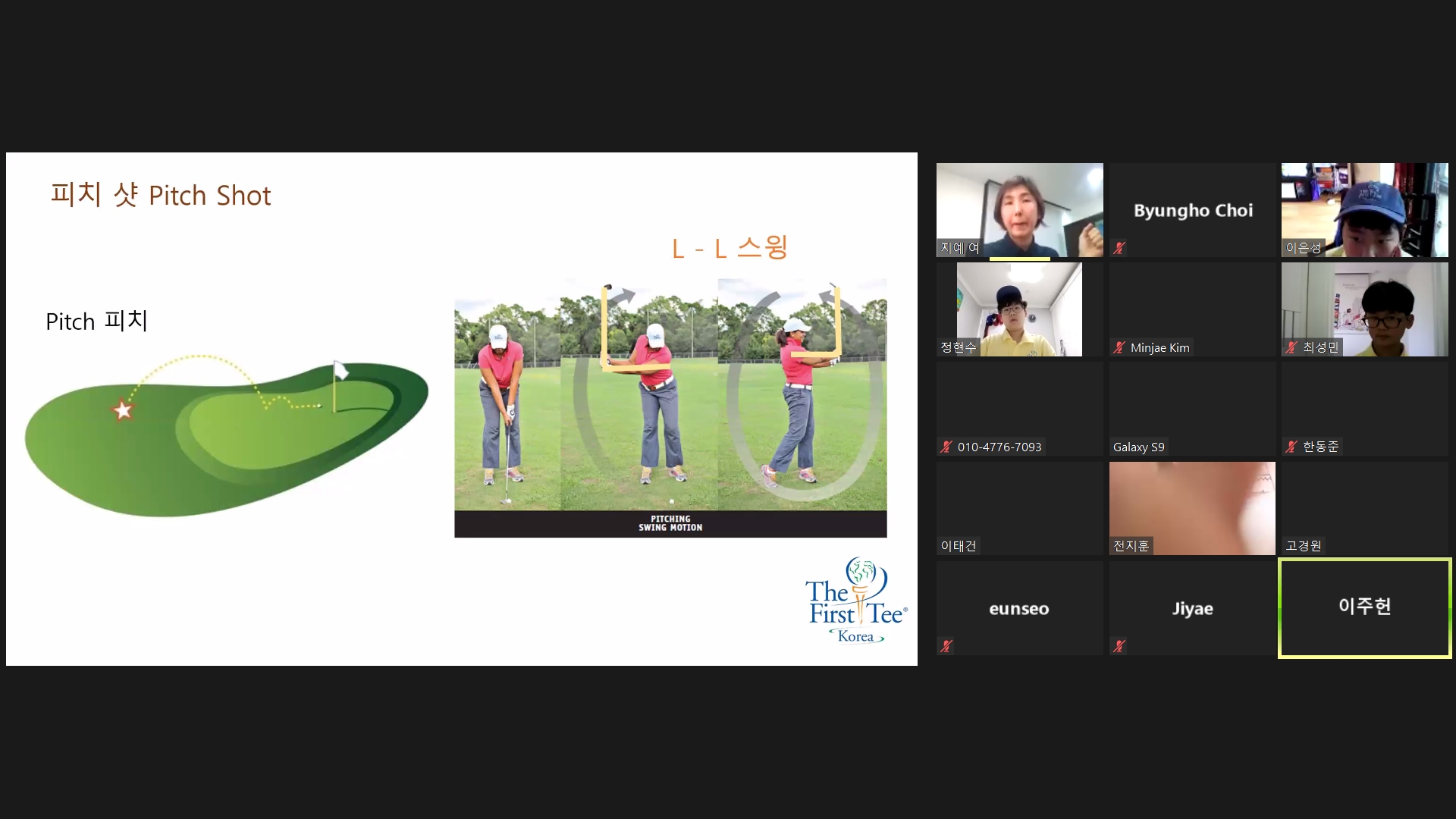 스윙의 크기에 따라 공이 날아가는 거리도 달라짐에 대해서 설명해 주고 있는 모습