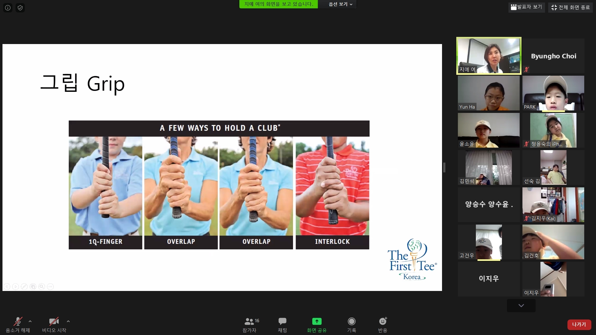 골프클럽의 그립을 잡는 방법의 종류에 대해서 설명해 주고 있는 모습
