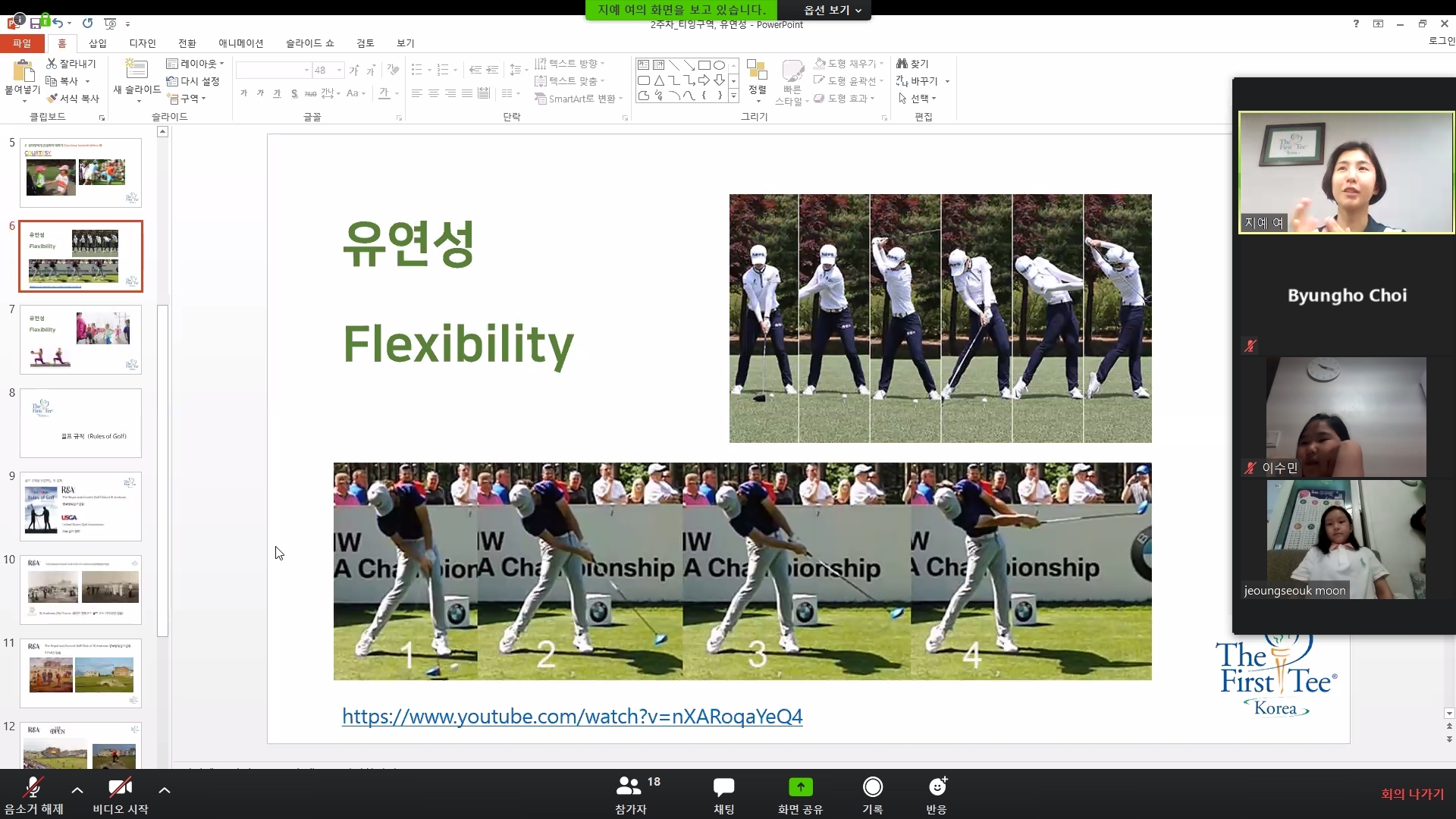 골프에서 유연성이 왜 필요하고 중요한지에 대해서 설명해 주고 있는 모습