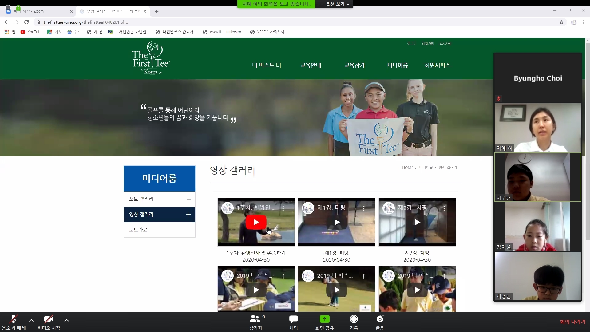미리 홈페이지에 올려놓은 동영상 자료에 대해 의견을 나누고 있는 모습