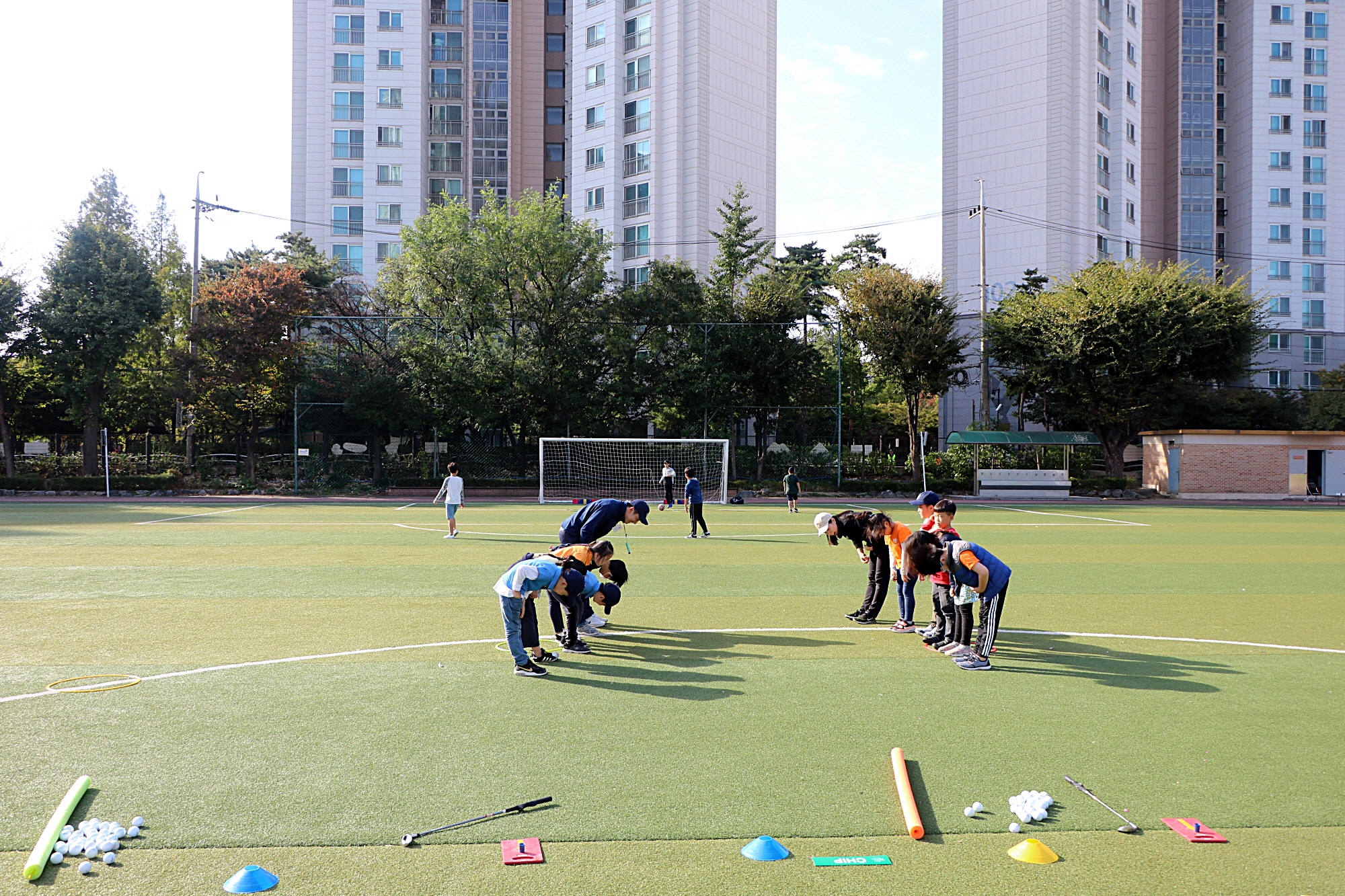 칩샷 대결을 앞두고 오늘의 핵심 주제인 스포츠맨십을 발휘하는 것을 실천해 보는 아이들