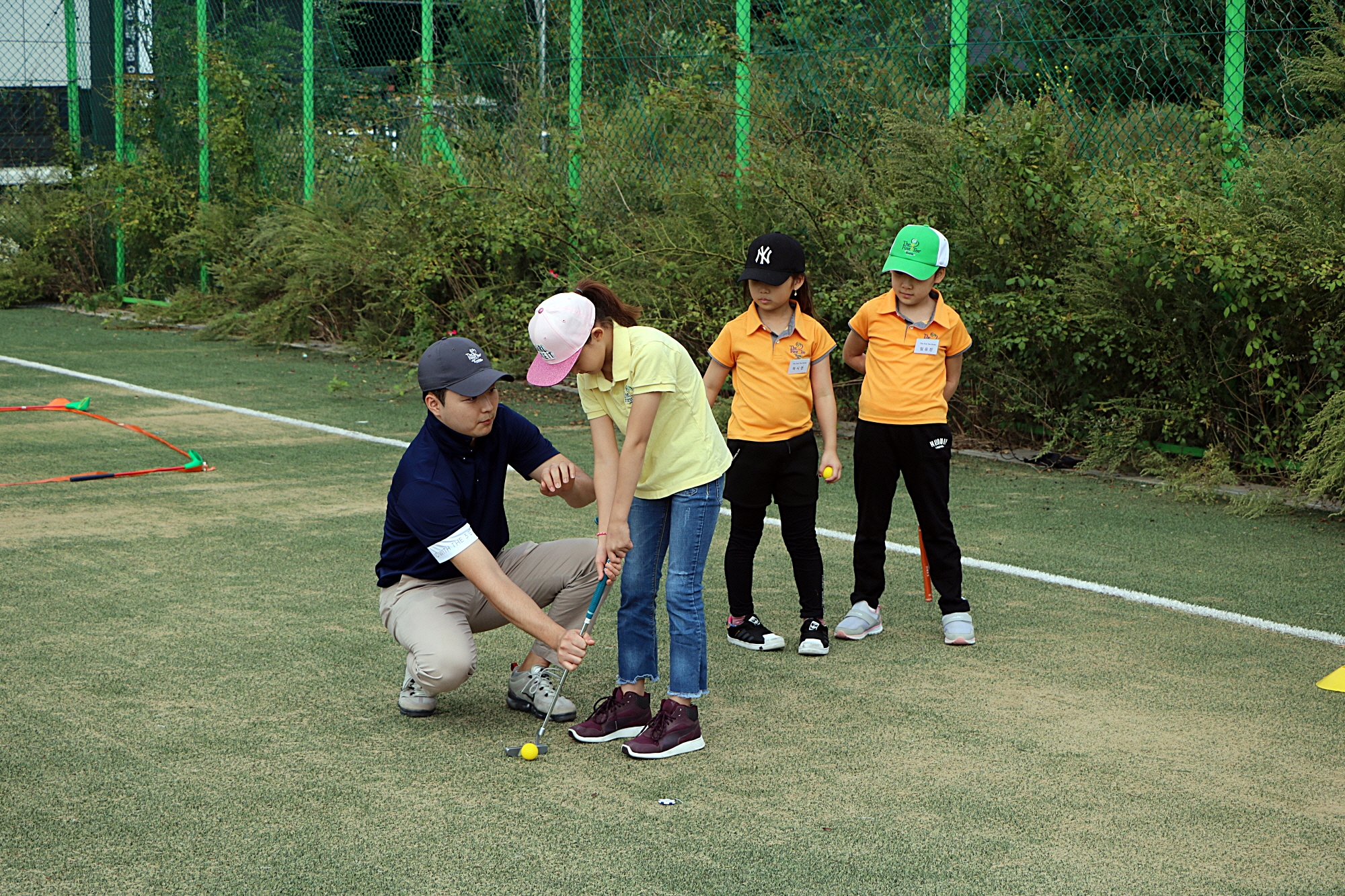 올바른 에이밍을 도와주고 있는 코치님
