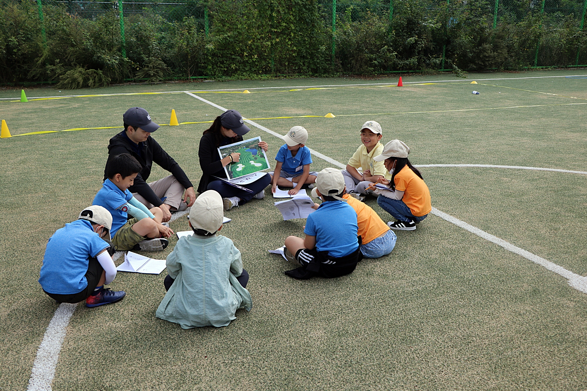 골프코스 가운데 러프에 대해서 설명해 주고 있는 모습