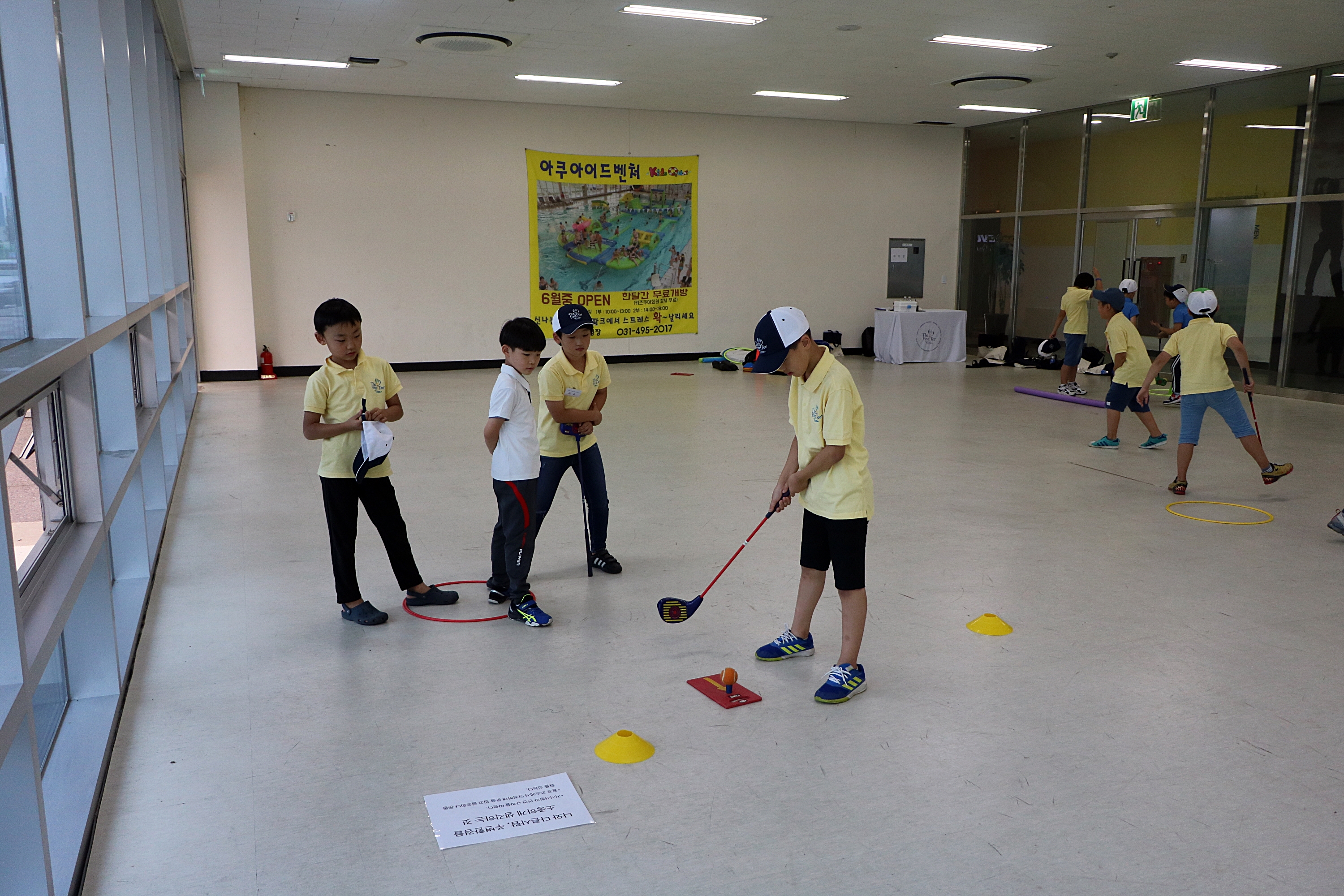 다른 친구가 플레이할 때는 안전을 위해 반드시 한쪽 발을 안전구역에 넣고 규정을 준수하는 모습