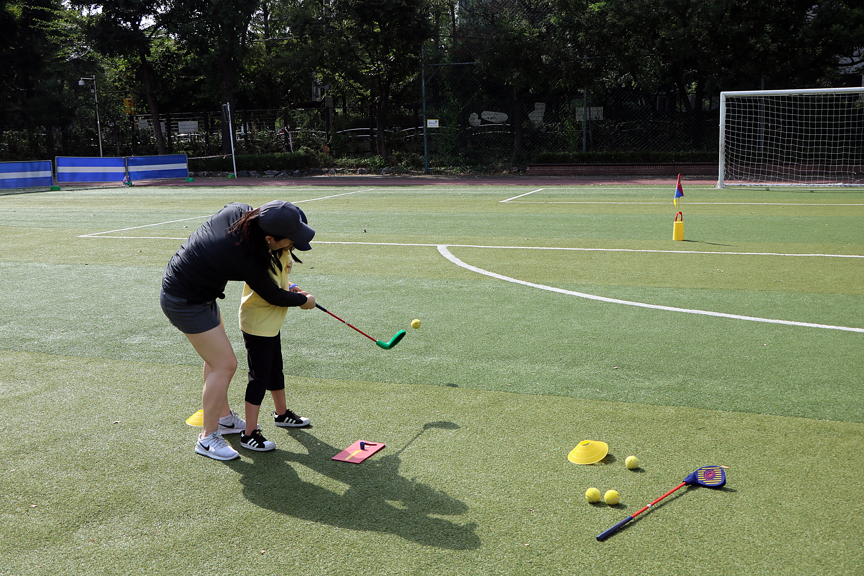 주로 그린 주변에서 하는 칩샷에 대해서 배우고 있는 모습