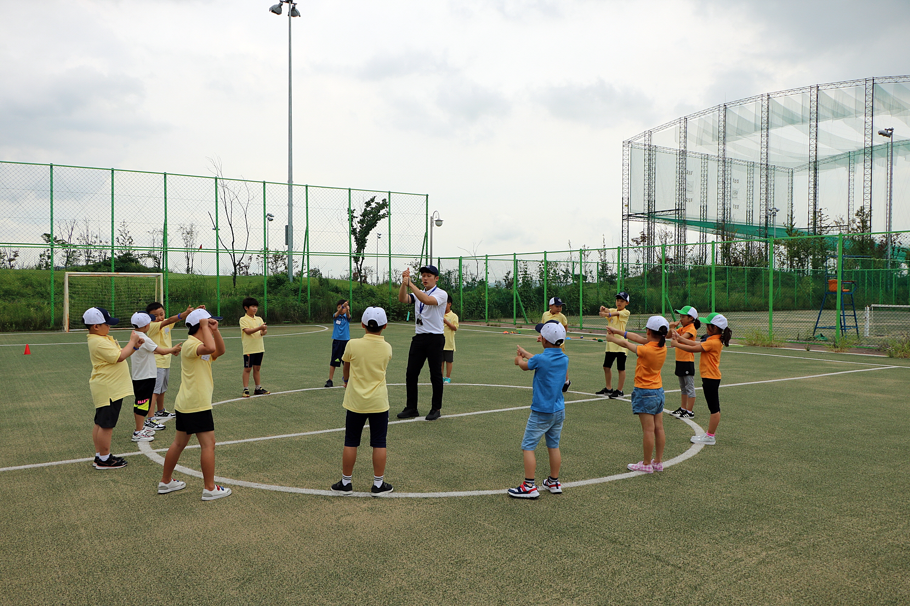 실제 클럽을 잡기 전에 그립 잡는 법에 대해서 배우고 있는 모습