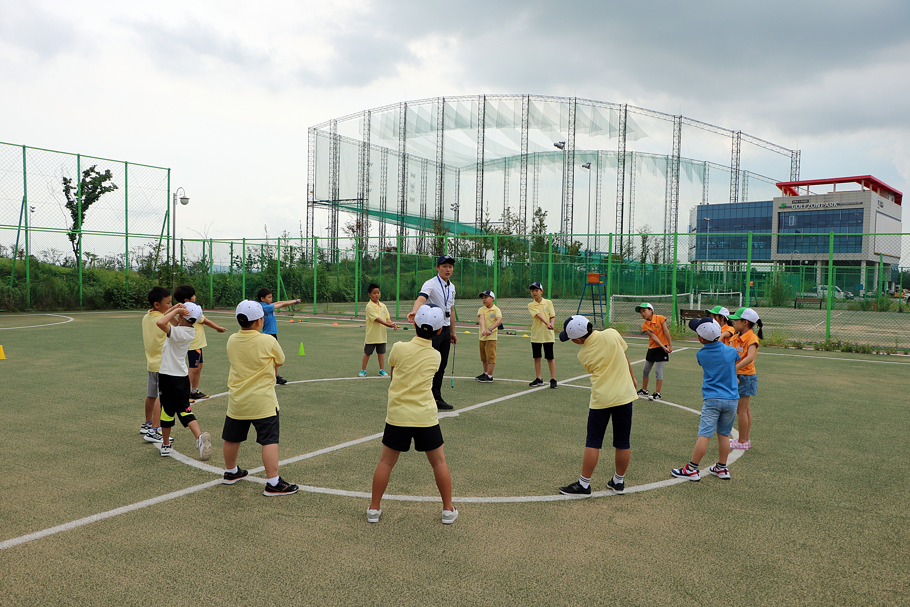 코치님이 하시는대로 Y to Y 스윙을 따라하며 즐거워 하는 아이들 모습