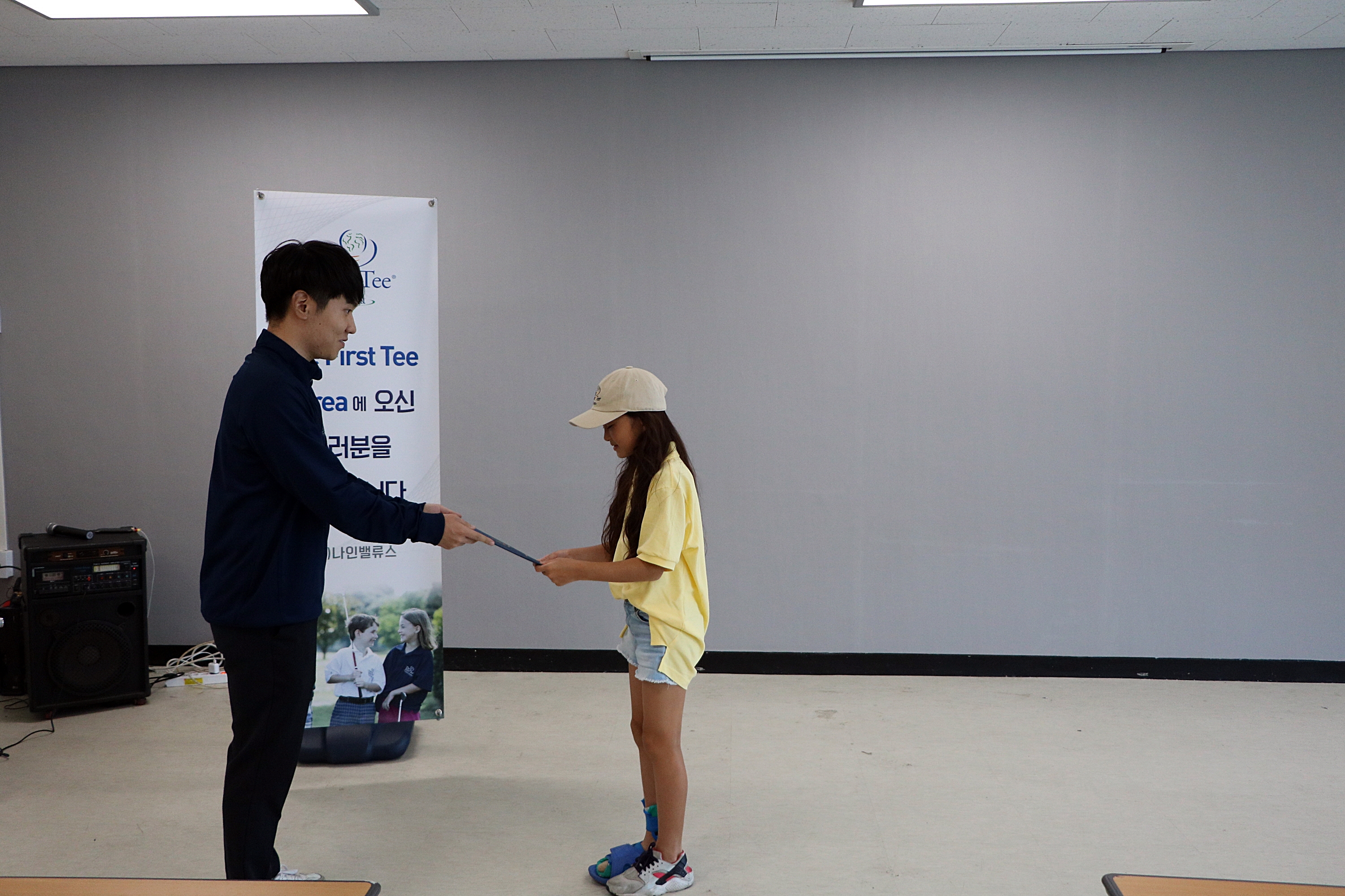 코치님께 10주간의 노력의 결실인 수료증을 받고 있는 모습
