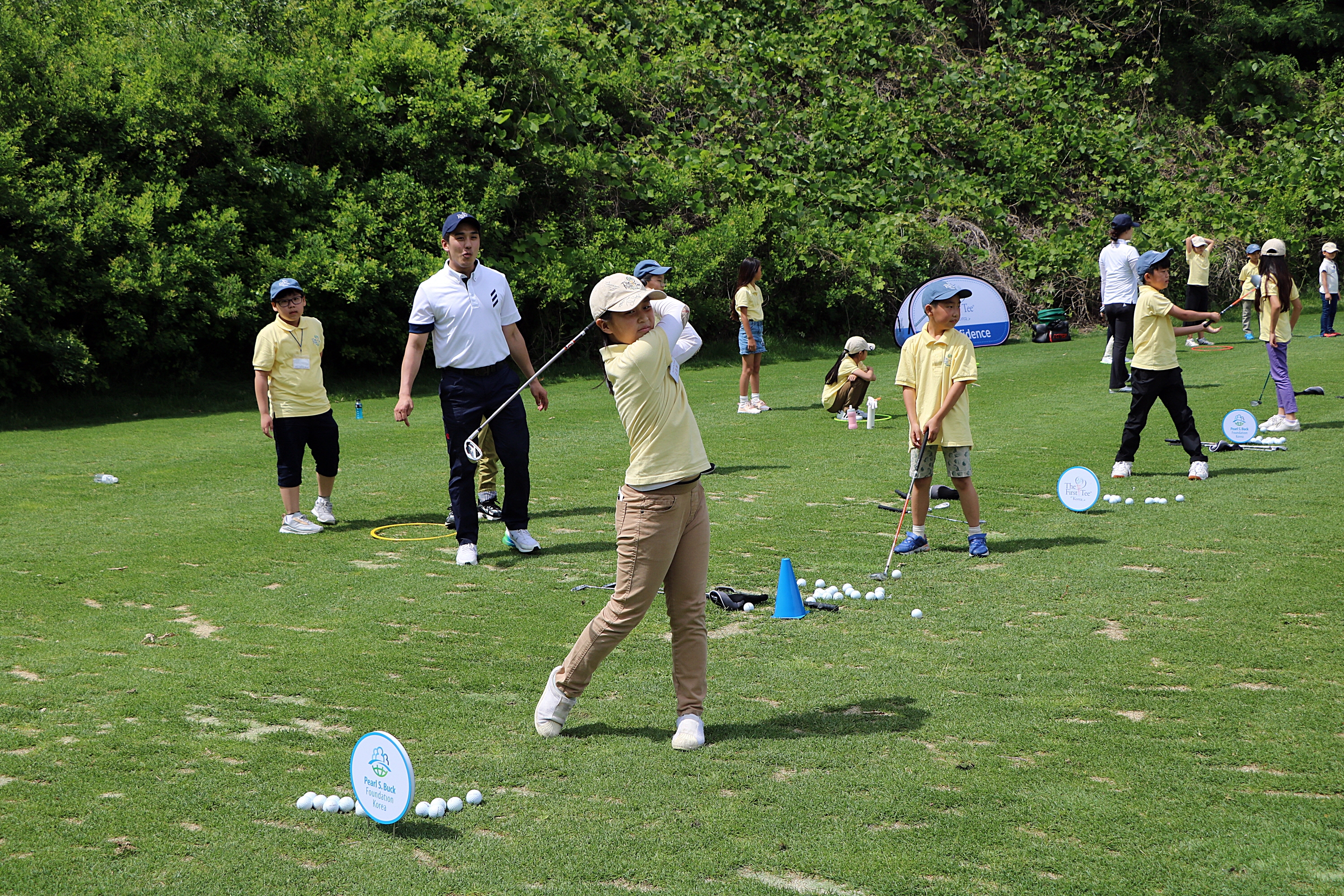 날카로운 아이언 샷을 선보이고 있는 교육생 모습