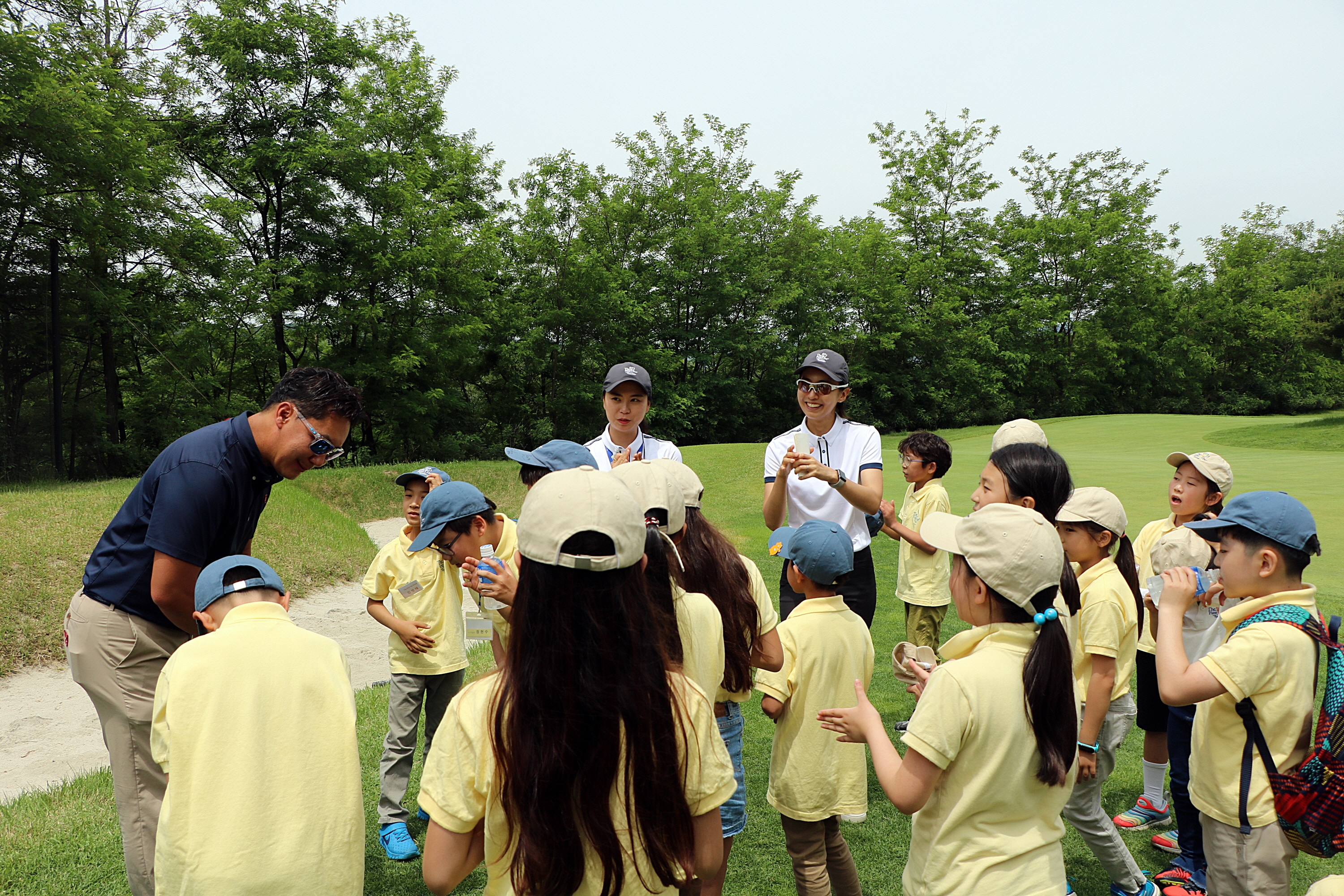 우드샷 연습을 위한 다른 교육장으로 이동하기 전 남영우 프로에게 감사의 인사를 전하는 아이들
